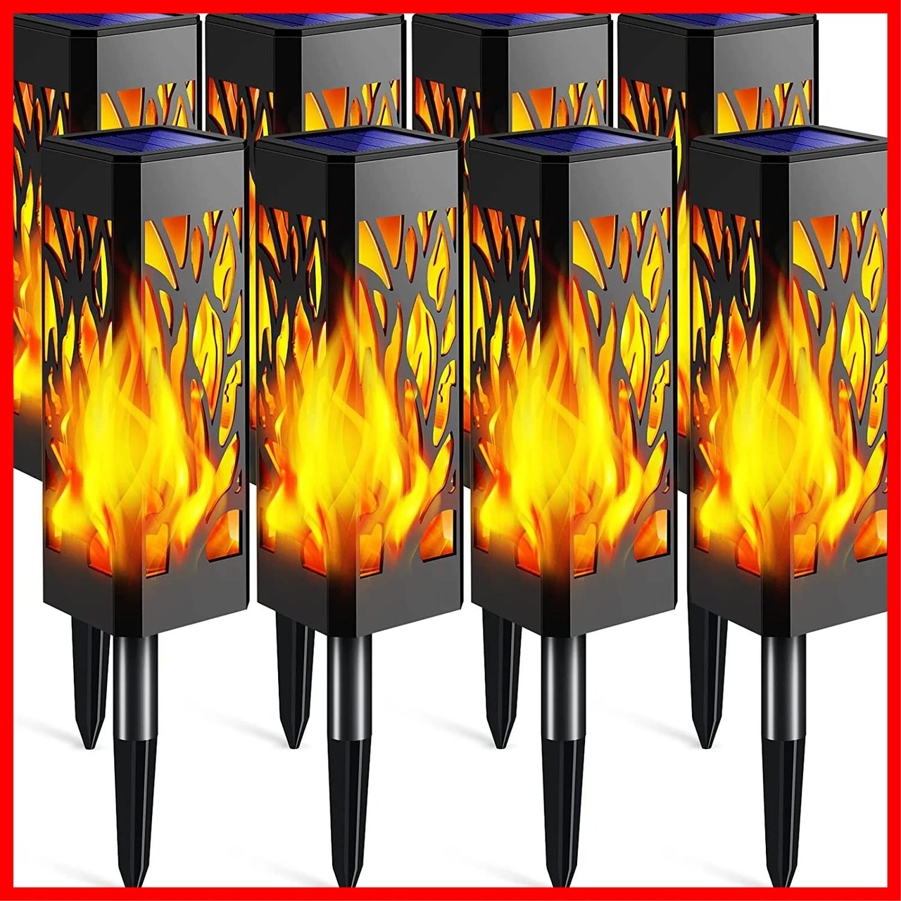 ソーラー ライト 屋外 ちらつき 炎 ソーラー パスウェイ ライト ソーラー パワード 装飾 ソーラー ガーデン ライト 防水 クリスマス ライト 屋外 風景 照明 庭 パティオ 通路用 (8個設計H)