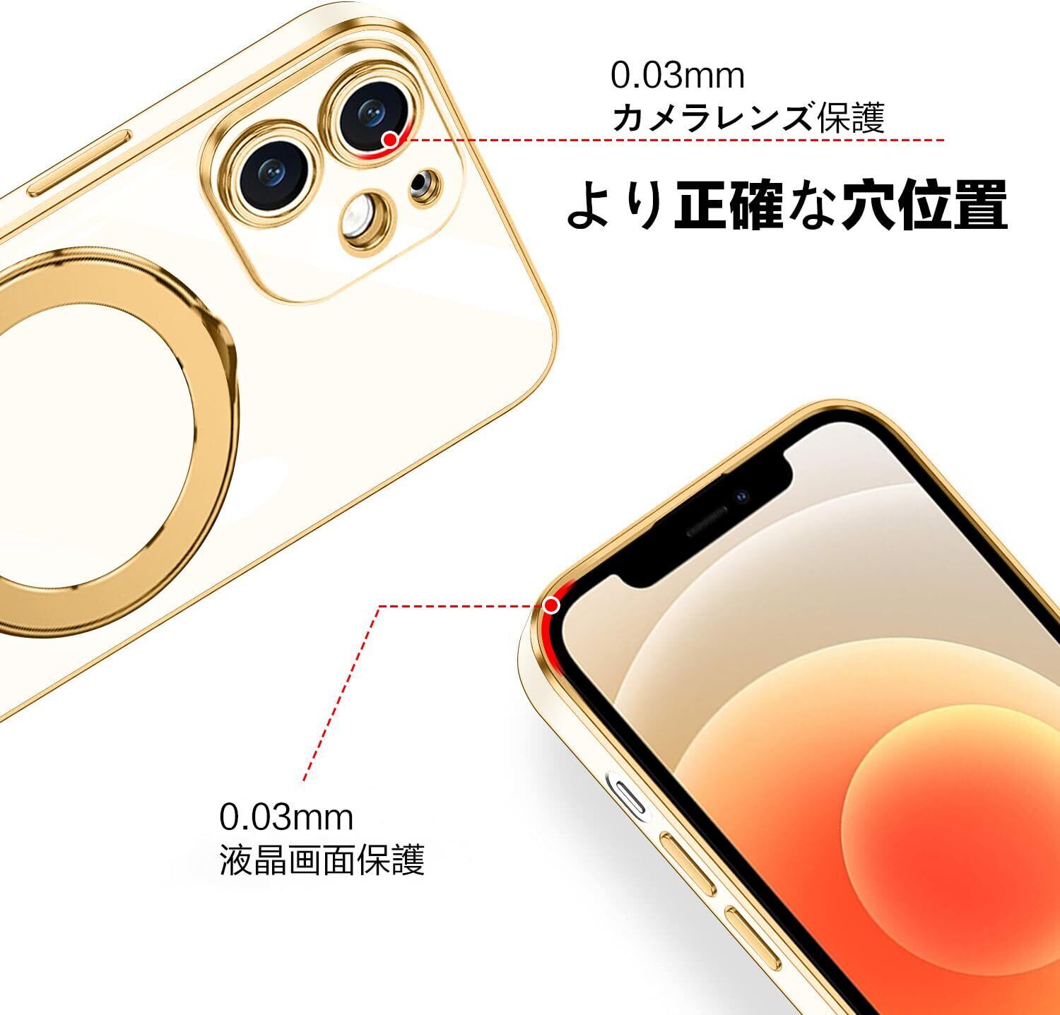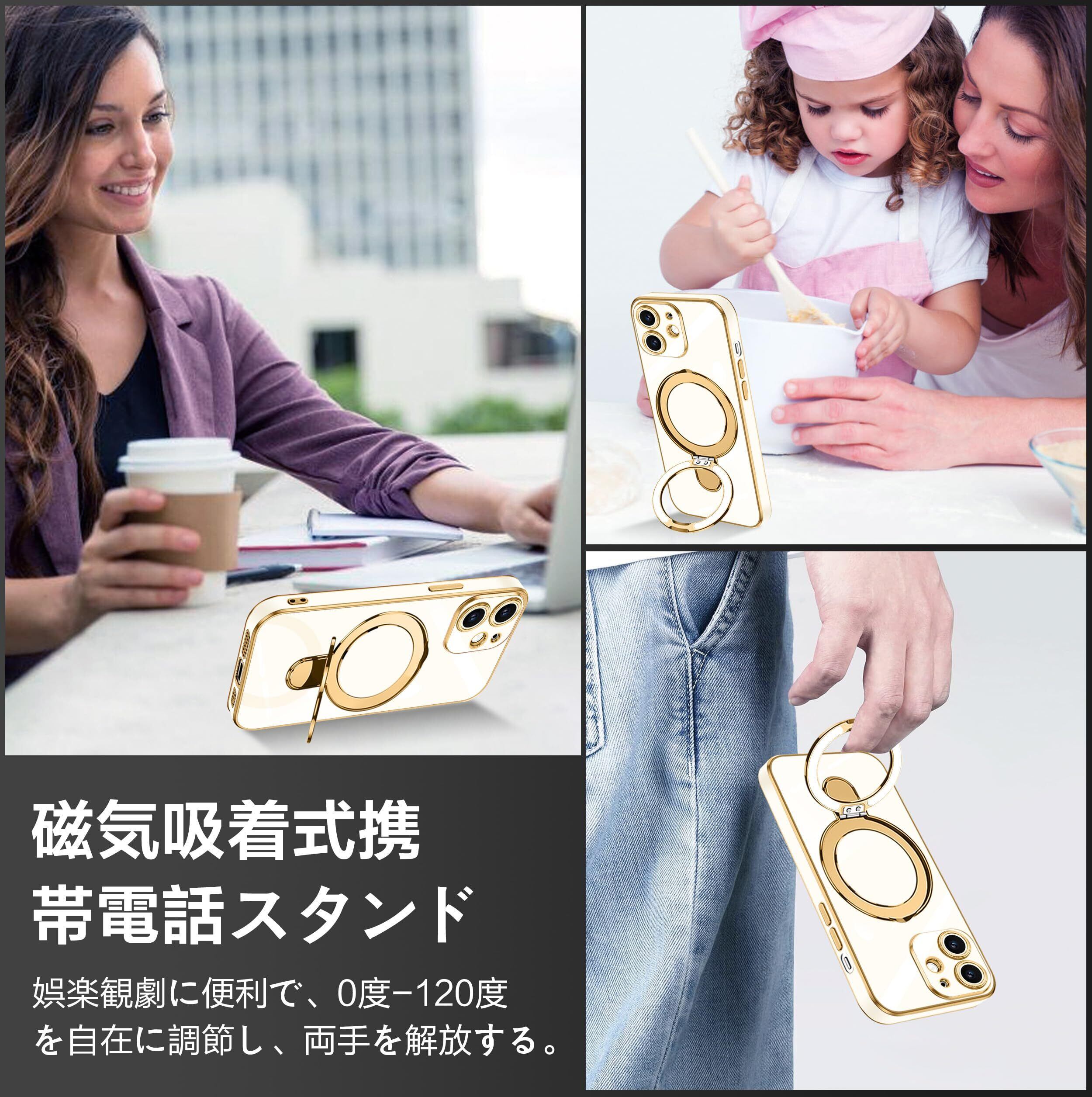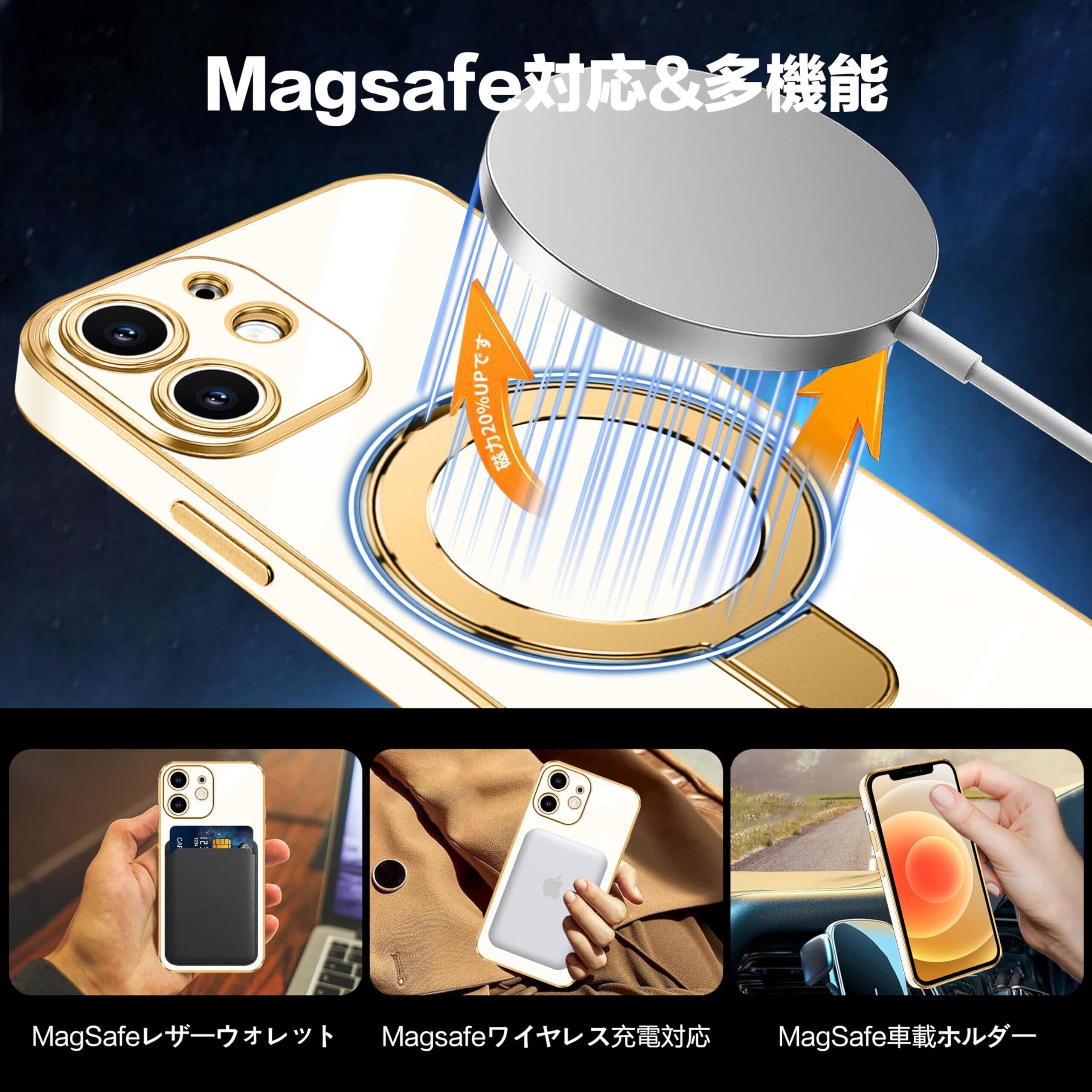 iPhone 12 ケース Magsafe対応 マグネット搭載 スタンド機能 縦横両対応 リング付き ストラップホール付き TPU 耐衝撃 全面保護 落下防止 隠しスタンド ワイヤレス充電対応 アイフォン 12 カバー (ホワイト)