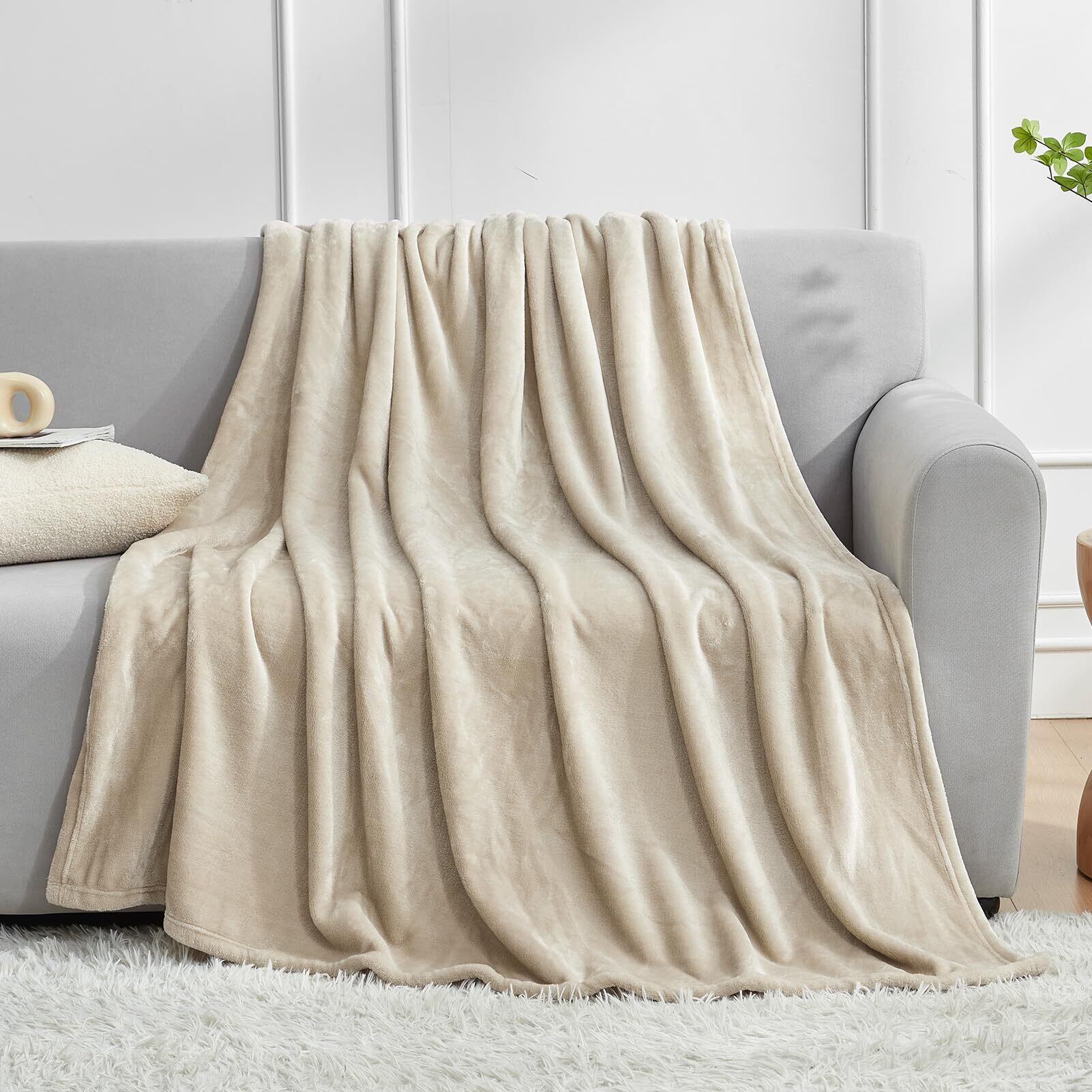 Hansleep 毛布 シングル 冬用 ブランケット 100x140cm グレージュ マイクロファイバー 柔らかく肌触り フランネル 洗える 静電防止 四季適用 (100x140,グレージュ)