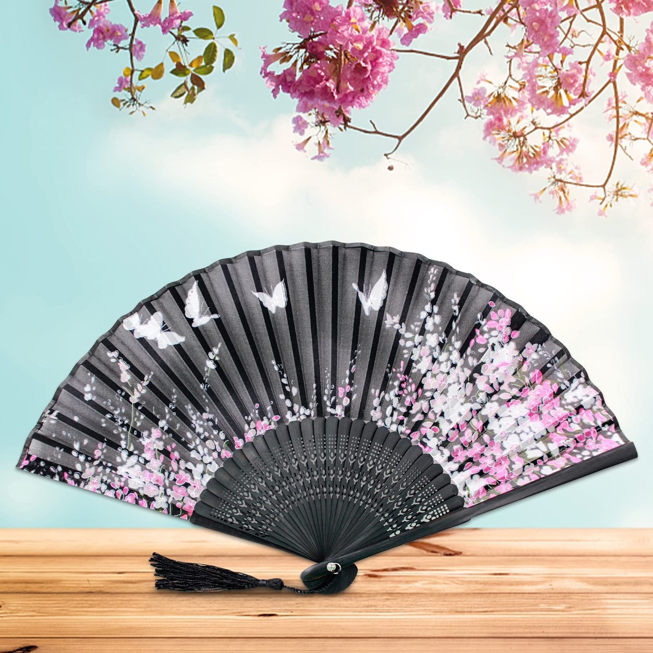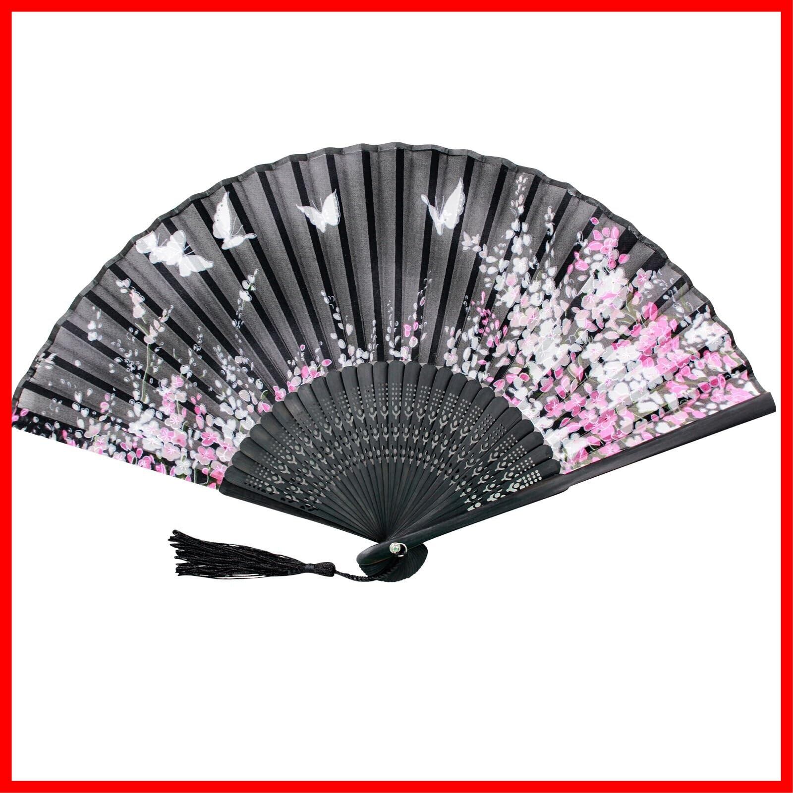[boshiho] 扇子 & 扇子袋 レディース レーヨン ダンス扇子 綺麗 花柄 蝶柄 桜柄 おしゃれ 和装小物 和風 上品 華やか