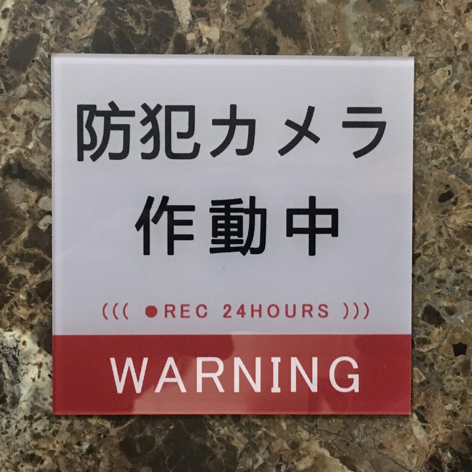Seagron 防犯カメラ 作動中(文字型)サインプレート 両面テープ付き ステッカー グレー色 2㎜アクリル製 おしゃれ 耐水 耐候 (80×80㎜(1枚))