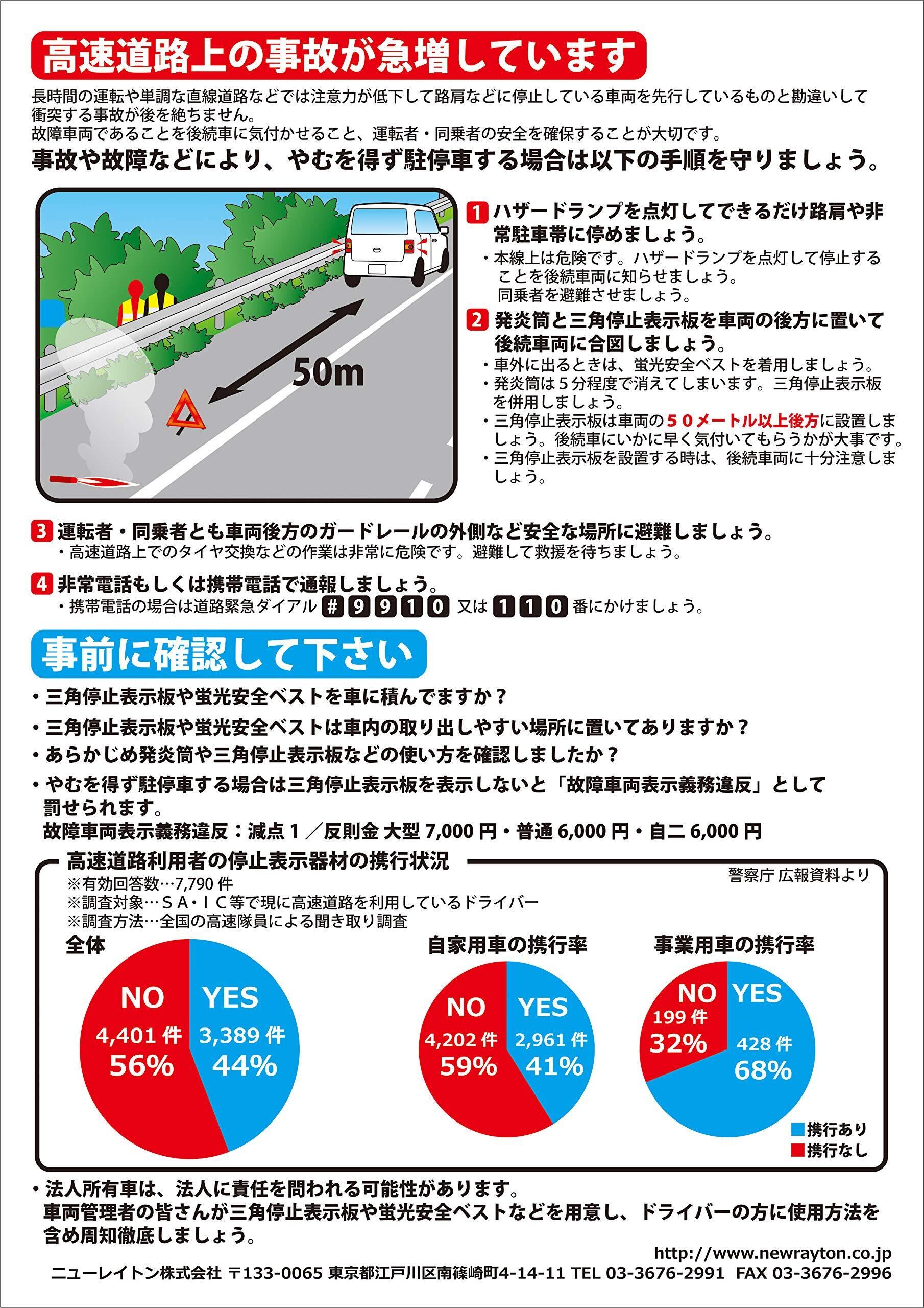 ●新車購入時には車載されてません!風圧に強く高速道路上でも安全に使用可能! ! 高速道路や自動車専用道路等で車を停止せざるを得ない場合、三角停止表示板を表示していないと、道路交通法違反となります! 1台に1つ常備しておきましょう。