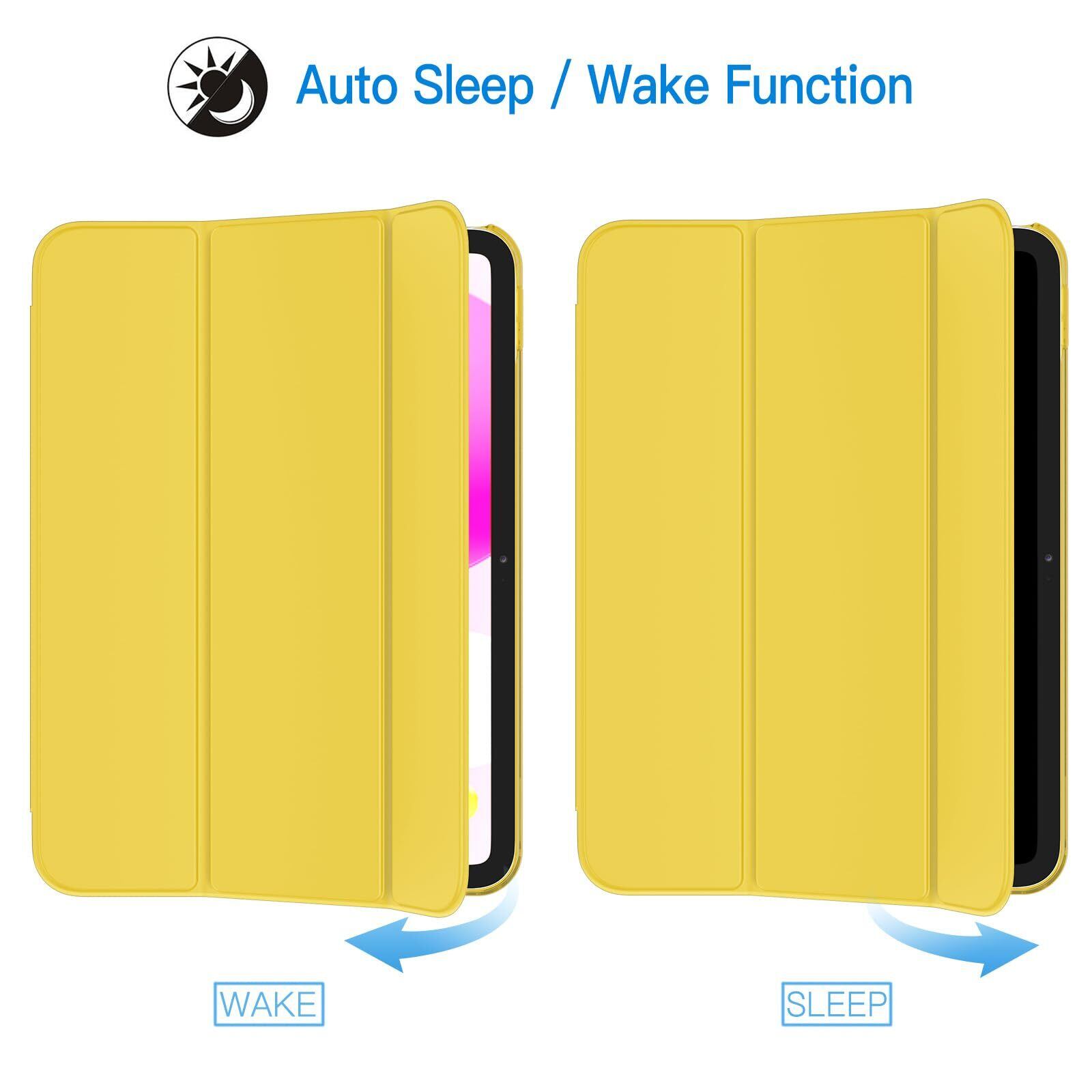 JEDirect iPad(A16)ケース 第11/10世代(2025/2022モデル)用スリムスタンドハードバック ウェイクアップ/オートスリープ機能付き タブレットカバー (イエロー)