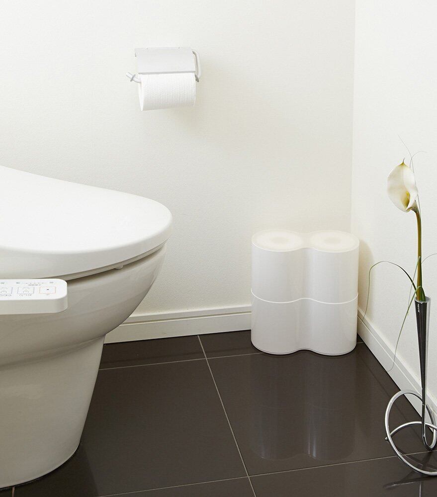 ●シンプルなデザインなので、どんなトイレにもしっくり馴染みる。ストックのトイレットペーパーは置き場所に困りがちだが、このケースに入れておくことでホコリから守りながらオシャレに収納できる