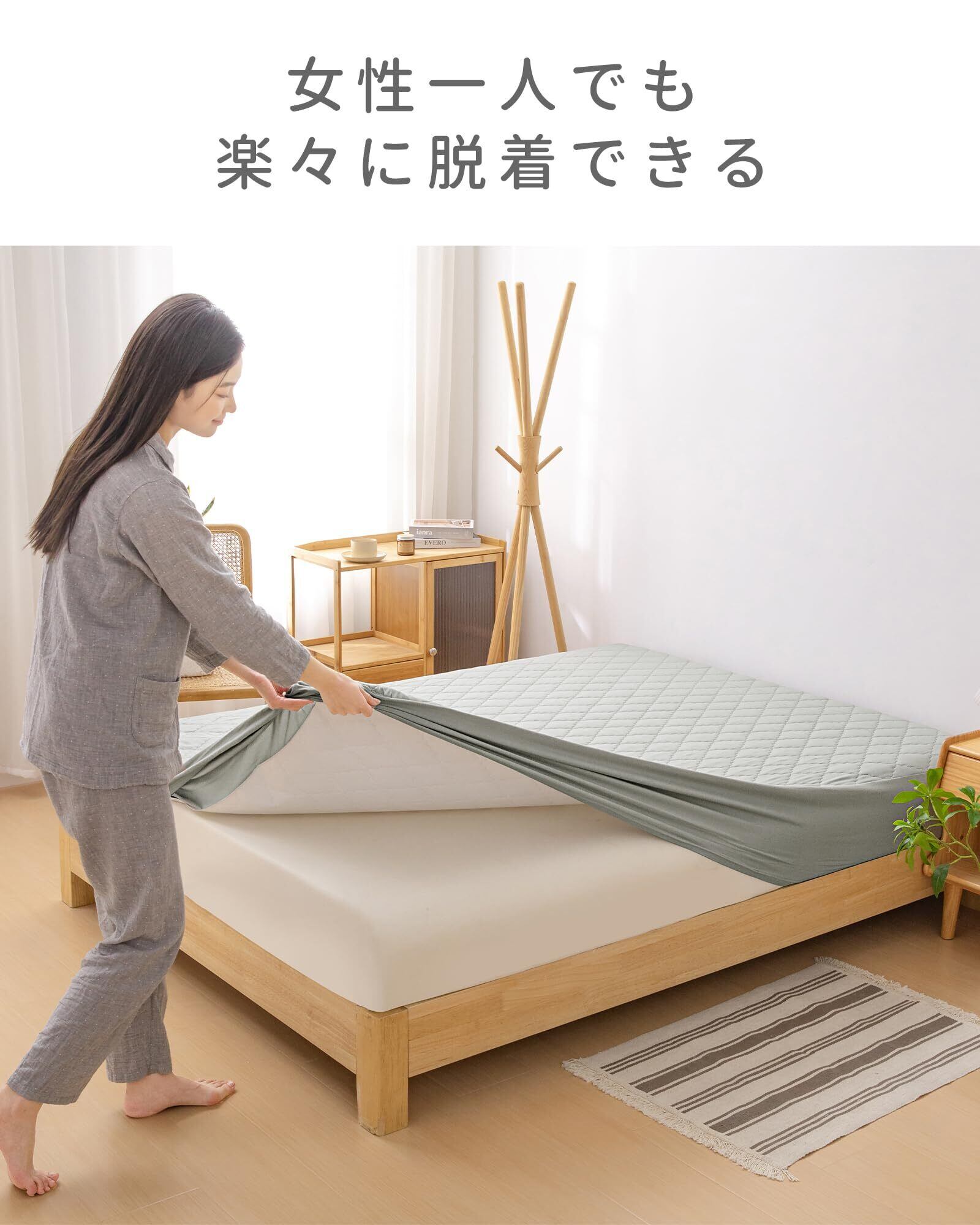 全周ゴムで簡単フィット四隅に強化ゴムバンドを採用し、5〜30cmの厚みのマットレスにも簡単にフィット。取り付けや取り外しも手軽にできます。