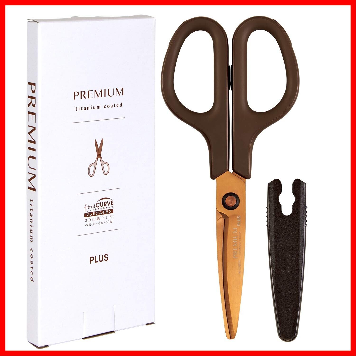 プラス はさみ 汚れ・サビに強い フィットカットカーブ プレミアムチタン ベタつかない 30度 切れ味継続加工 紙箱包装 ダークブラウン 35-724