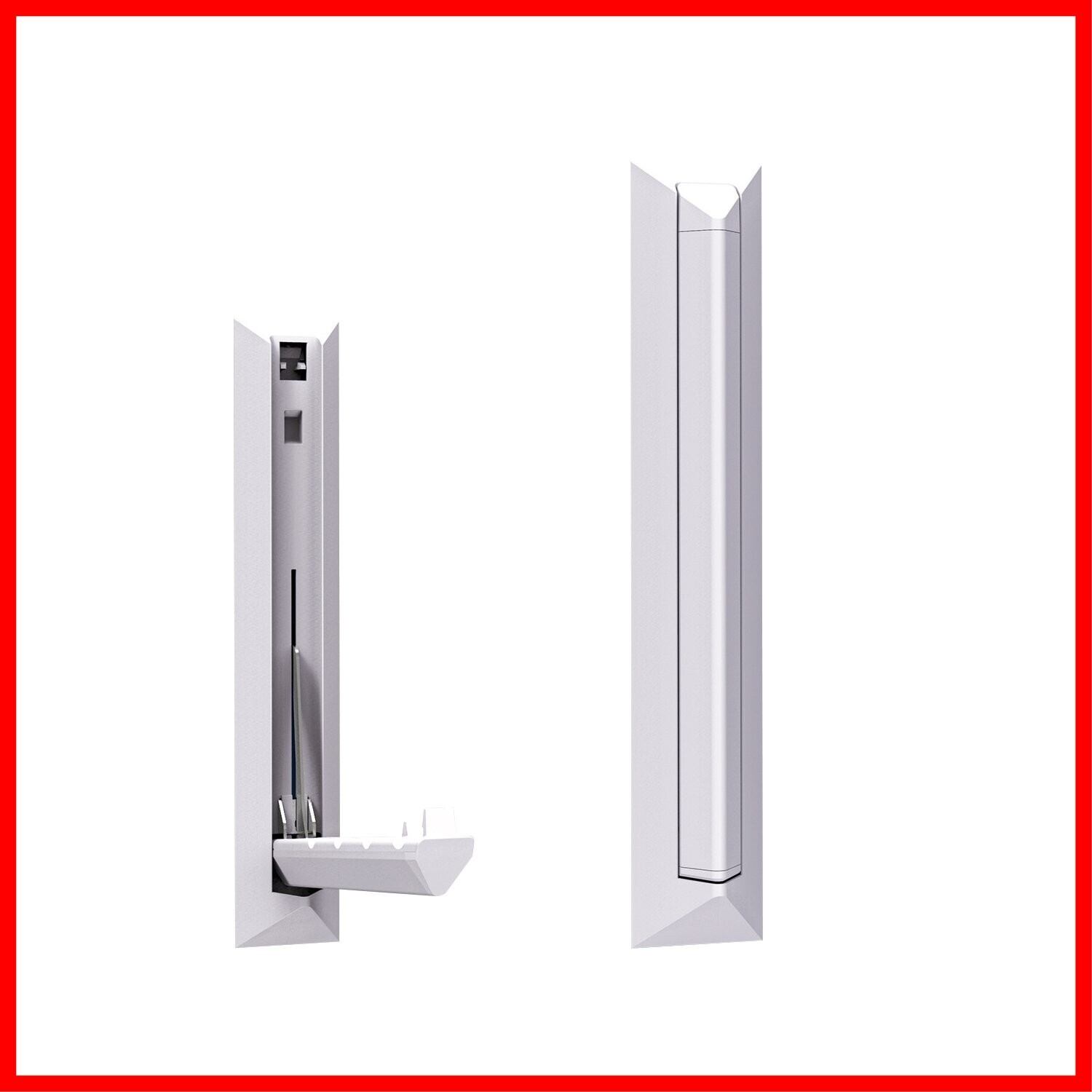 石膏ボード壁に取付けられる壁面物干し。使わないときはアーム部分をスッキリ収納。