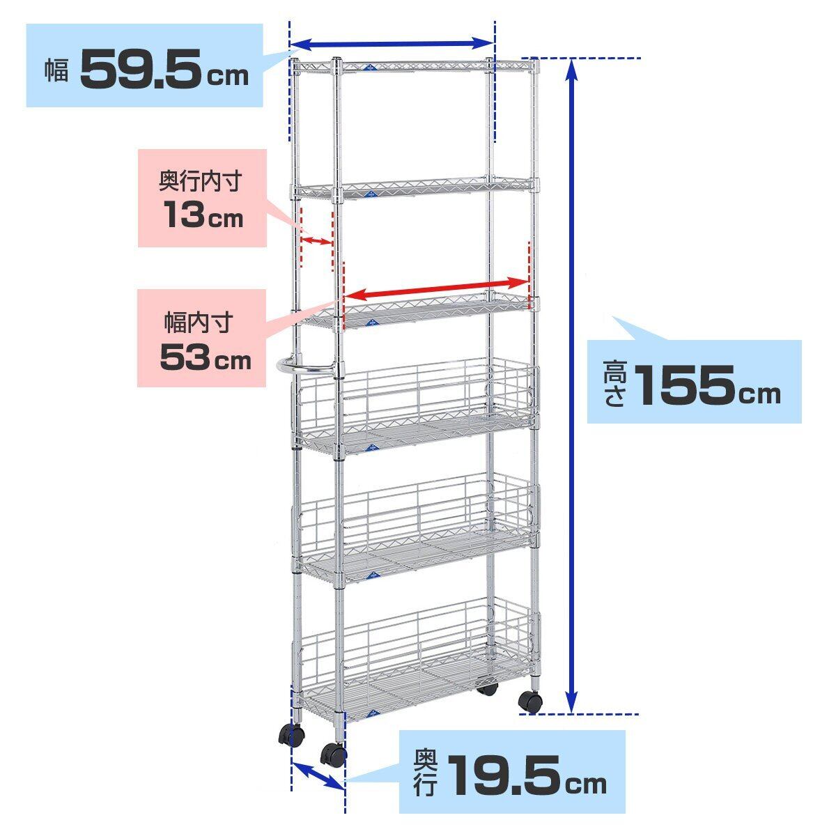 シェルフ(棚)内寸(cm):(約)幅13×奥行53cm