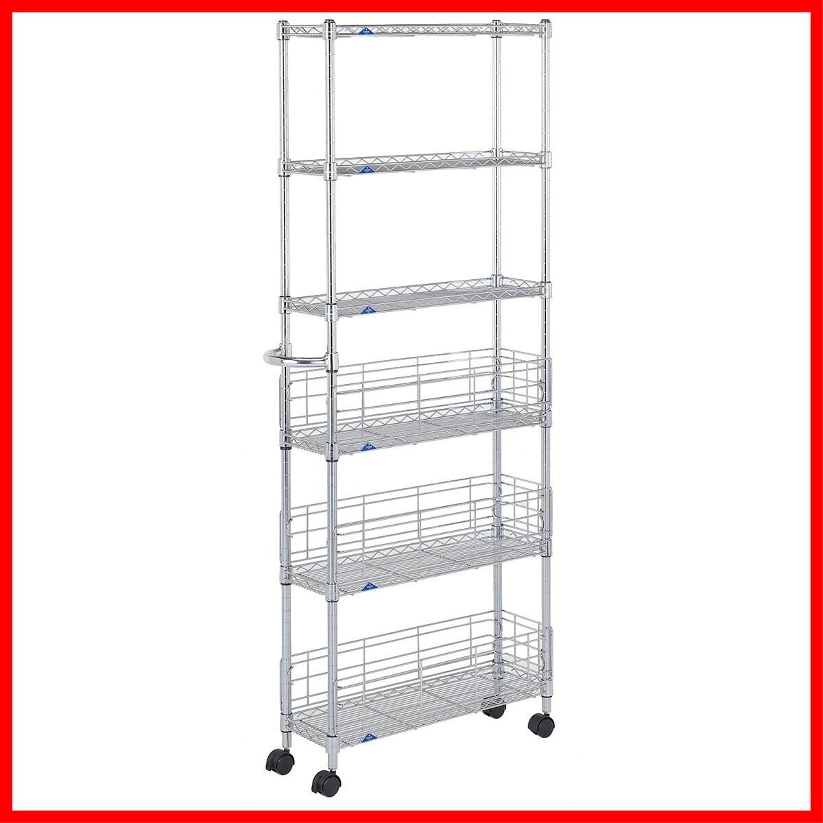 ドウシシャ ルミナス フィール キッチンラック ワゴン スチールラック 隙間収納 収納棚 幅20 6段 サビに強い 防錆加工 組立簡単 キャスター付き 耐荷重80kg (棚板1枚) ポール径19mm 幅19.5×奥行59.5×高さ155cm MD2015-6W | hananoki