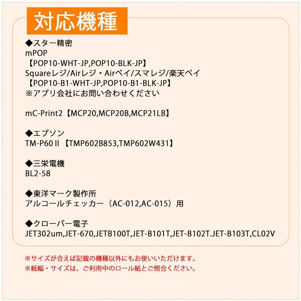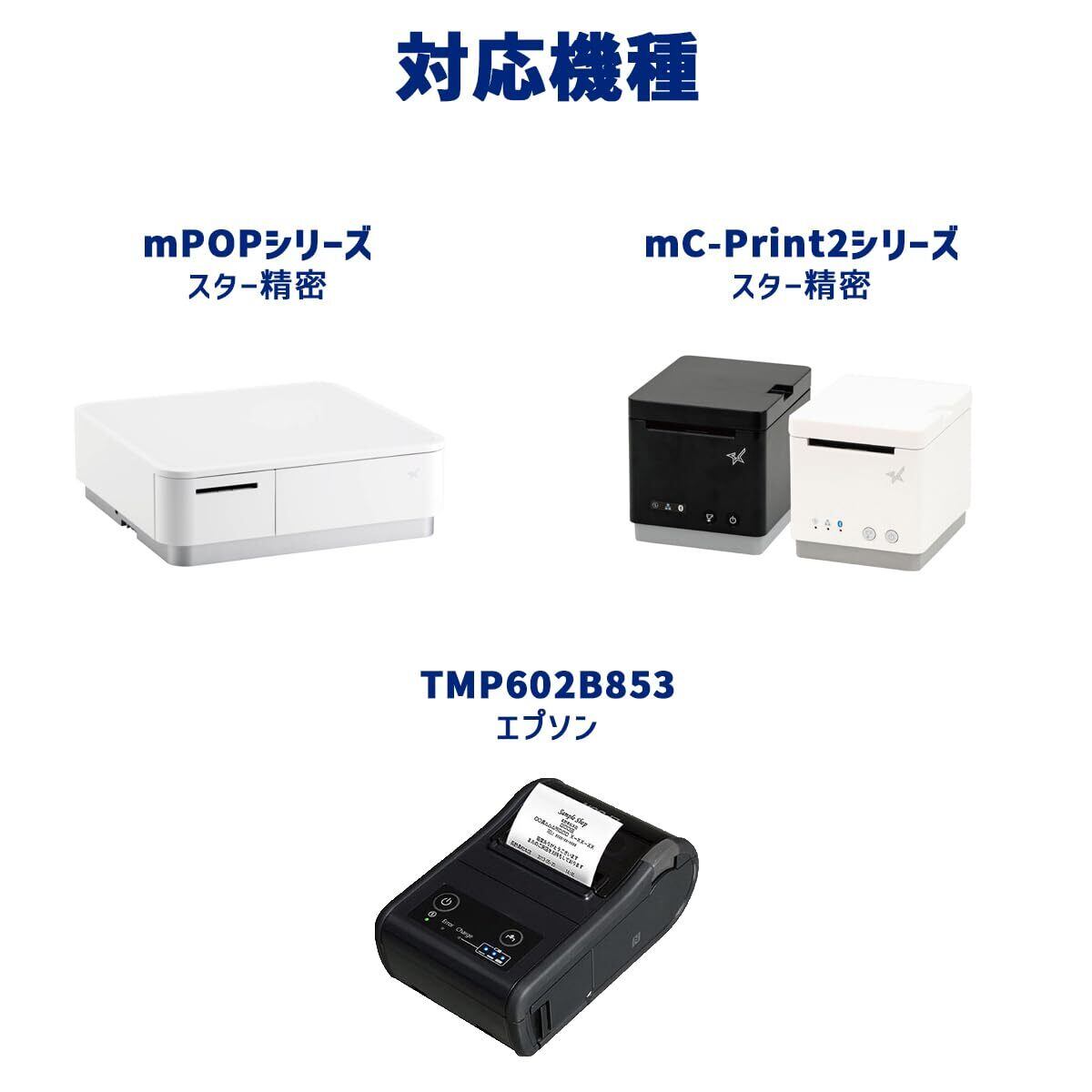 ロールの直径50mm スター精密:POP10/MCP21LB、エプソン:TMP602B853 などのプリンターに対応。 Square/Airレジ/Airペイ/スマレジ/楽天Pay/ユビレジなど、各レジのレシート印刷に。
