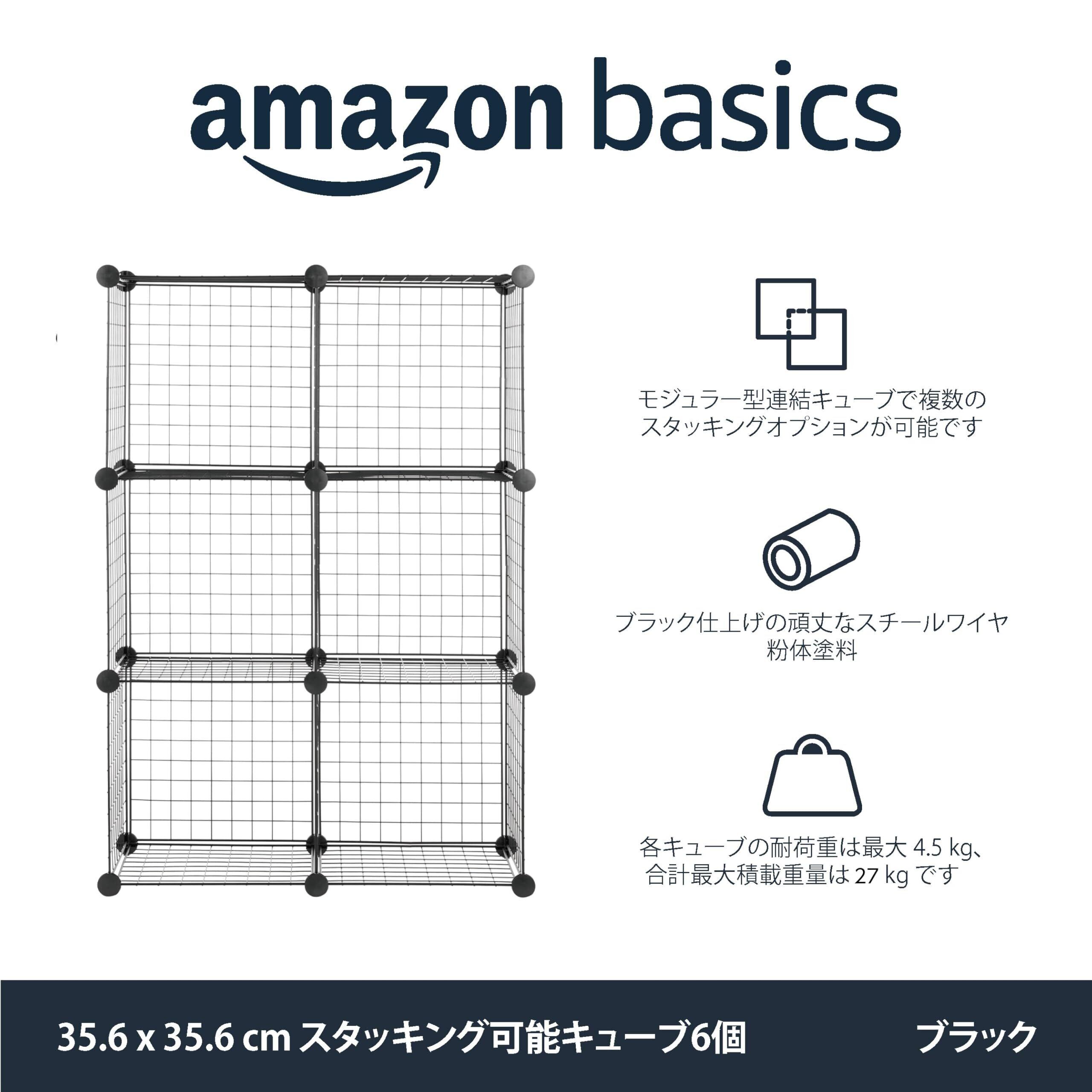 6箱の連結式ワイヤー製収納キューブはおしゃれな収納と整ったディスプレイを併せ持っています。一つのキューブのサイズは35.6×35.6×35.6cmです。