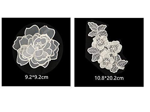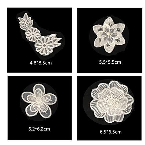 Sweetimes レース生地 刺繍花 縫製 DIY 服 工芸品の装飾 パッチ アップリケ モチーフ 10枚セット アイロン両面接着シート付No.16 (ホワイト10枚セット②)