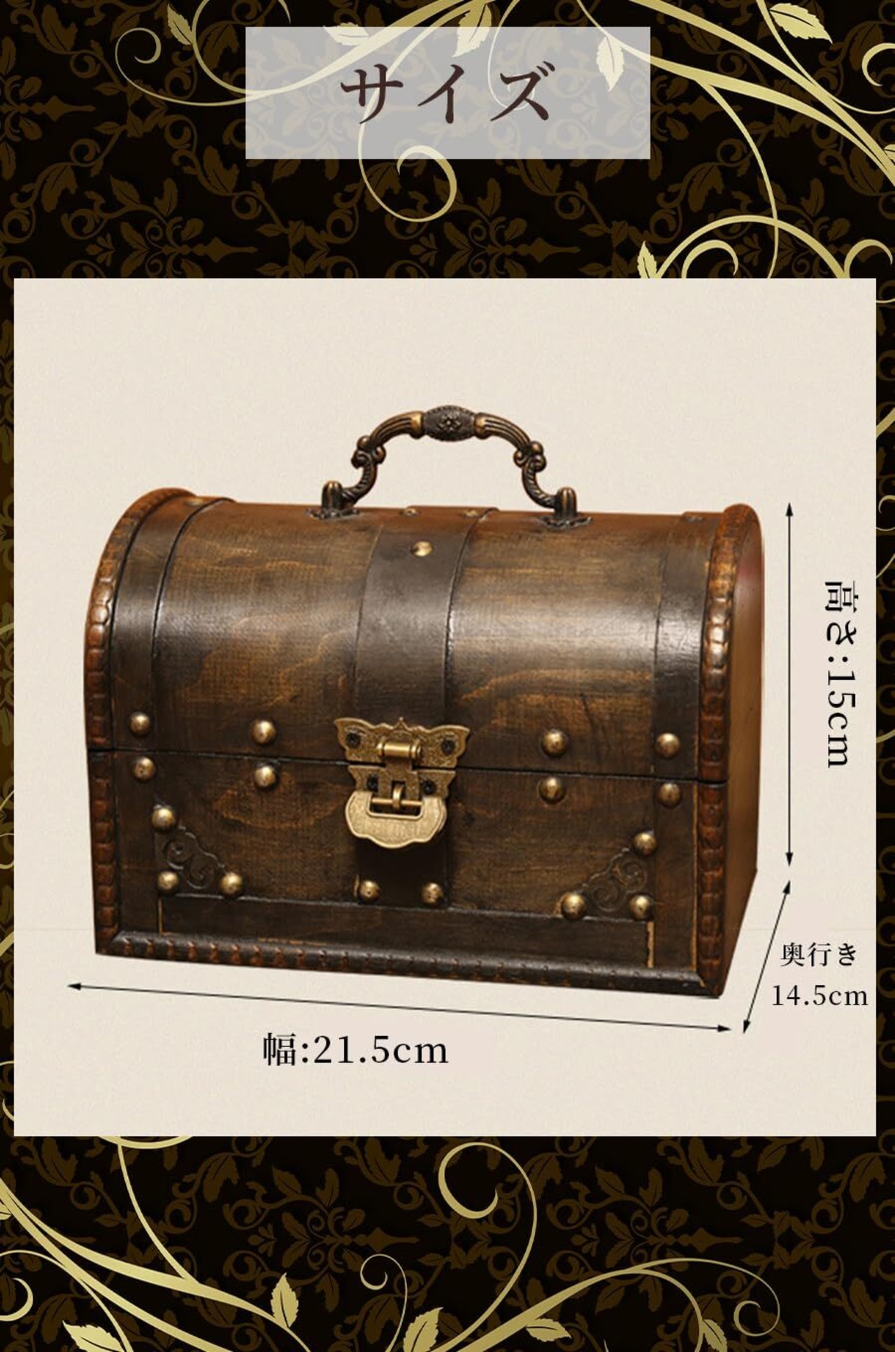 ideamall 小物入れ 宝箱 木製 収納 アンティーク 財宝 小箱 ふた付き レトロ インテリア (ダイヤル)