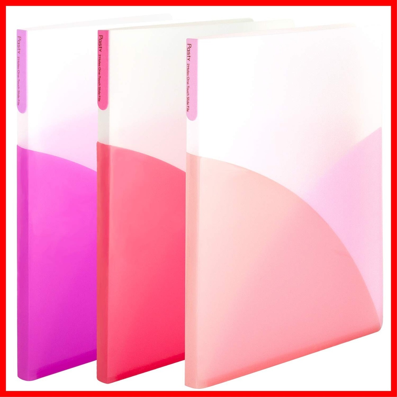 セット : ピンクジェラート3色セット / タイプ : 2穴ワンタッチスライドファイル / 穴数 : 2穴