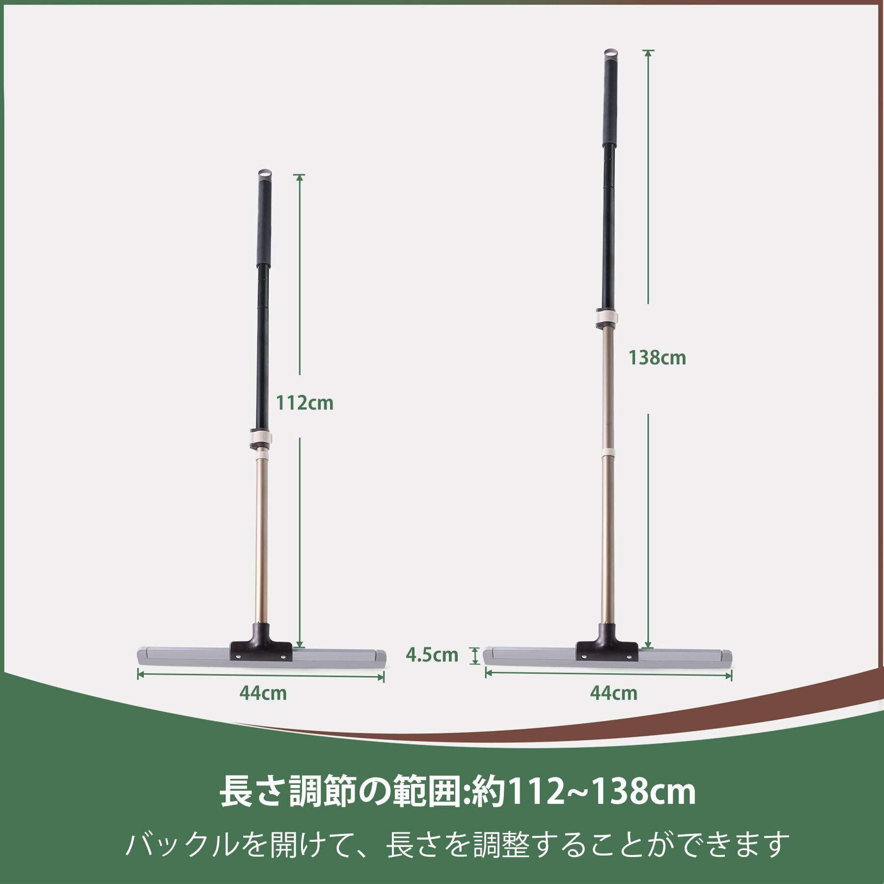 【いいデザイン】:水切りワイパーは45度の角度、人間工学に基づいたデザイン、腰を大変に曲げる必要なくお気軽に使用できます。ヘッドの先端の幅は44cmで、さまざまな掃除場に適しています。玄関、廊下、バスルームに使用されるだけでなく、ガレージ、歩道、体育館などにも最適です。