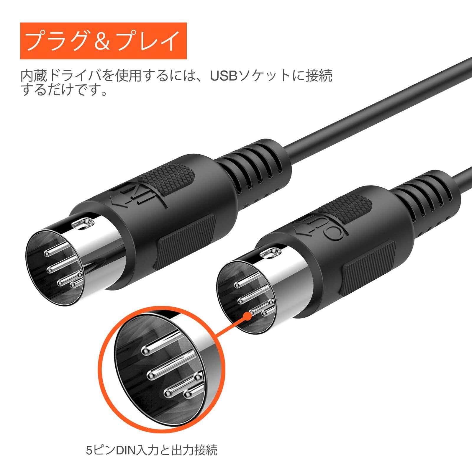 MIDIケーブル USB インターフェース ケーブル キーボード 5PIN-DIN LEKATO 電子楽器とPC 簡単接続 変換ケーブル 高伝送効率 1.98M (USB)