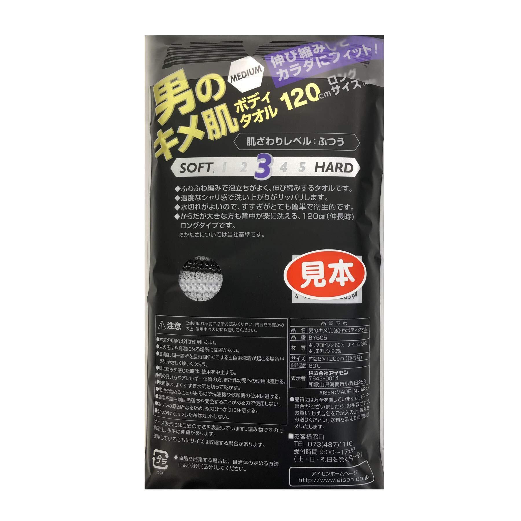 アイセン(AISEN) メンズ ボディタオル 男のキメ肌 泡ふわボディタオル 伸び縮みしてカラダにフィット 伸長時120cmロングサイズ 背中もラクに洗える 肌ざわりふつう BY505, 128mm×45mm×250mm