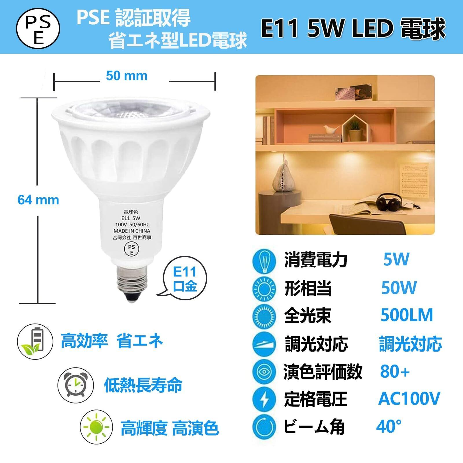 E11 LED 電球 スポットライト 調光器対応 電球色 3000K 4個セット E11口金 5W 6W 50W型相当 500LM E11 LED電球 高輝度 高演色 長寿命 省エネ AC100V JDRΦ50 ビーム角40° | hananoki