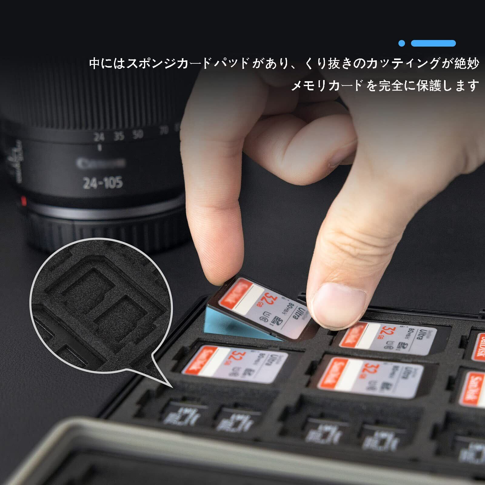 JJC 大容量 メモリーカードケース 9枚 SD SDHC SDXC カード + 30枚 MicroSD TF MSD カード + 2枚CF カード + 2枚 XQD/CFexpress Type B カード + 2枚 CFexpress Type A カード + 1枚フラットヘッドツール(付属)+ 1枚SIMカードリリースピン(付属) 収納可能 耐衝撃 防塵 防湿 カードシール付き | hananoki