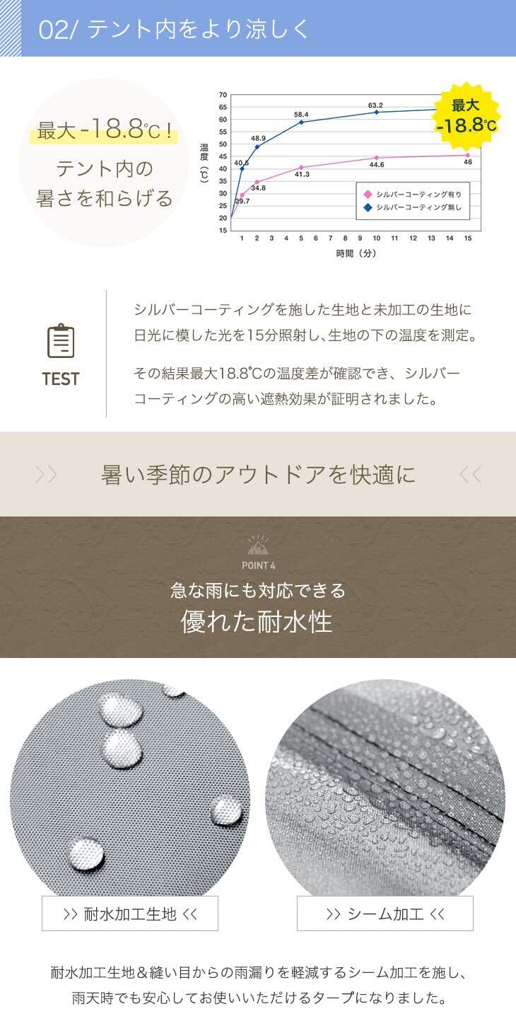 【素材】生地:190Tポリエステル(シルバーコーティング) / ポール・ペグ:スチール / 自在:プラスチック