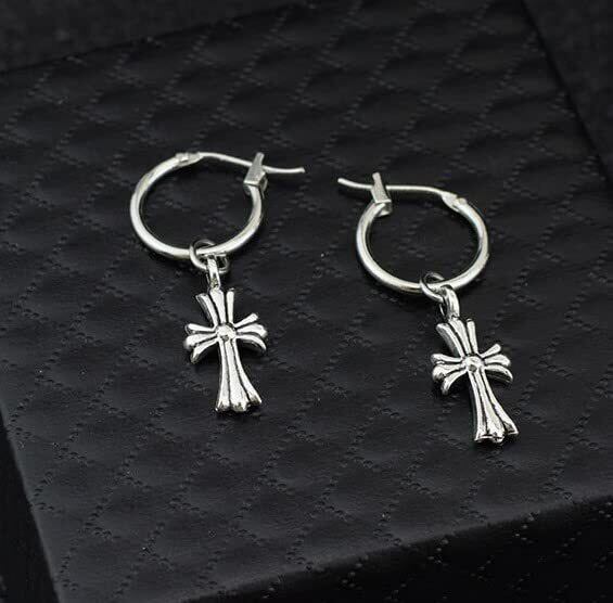 【メンズ・レディースどちらにも◎】シンプルな十字架クロスのリングピアスなので、メンズ・レディースどちらにもおススメです!2つ入りなので友達や恋人とペアでの使用もおススメ◎