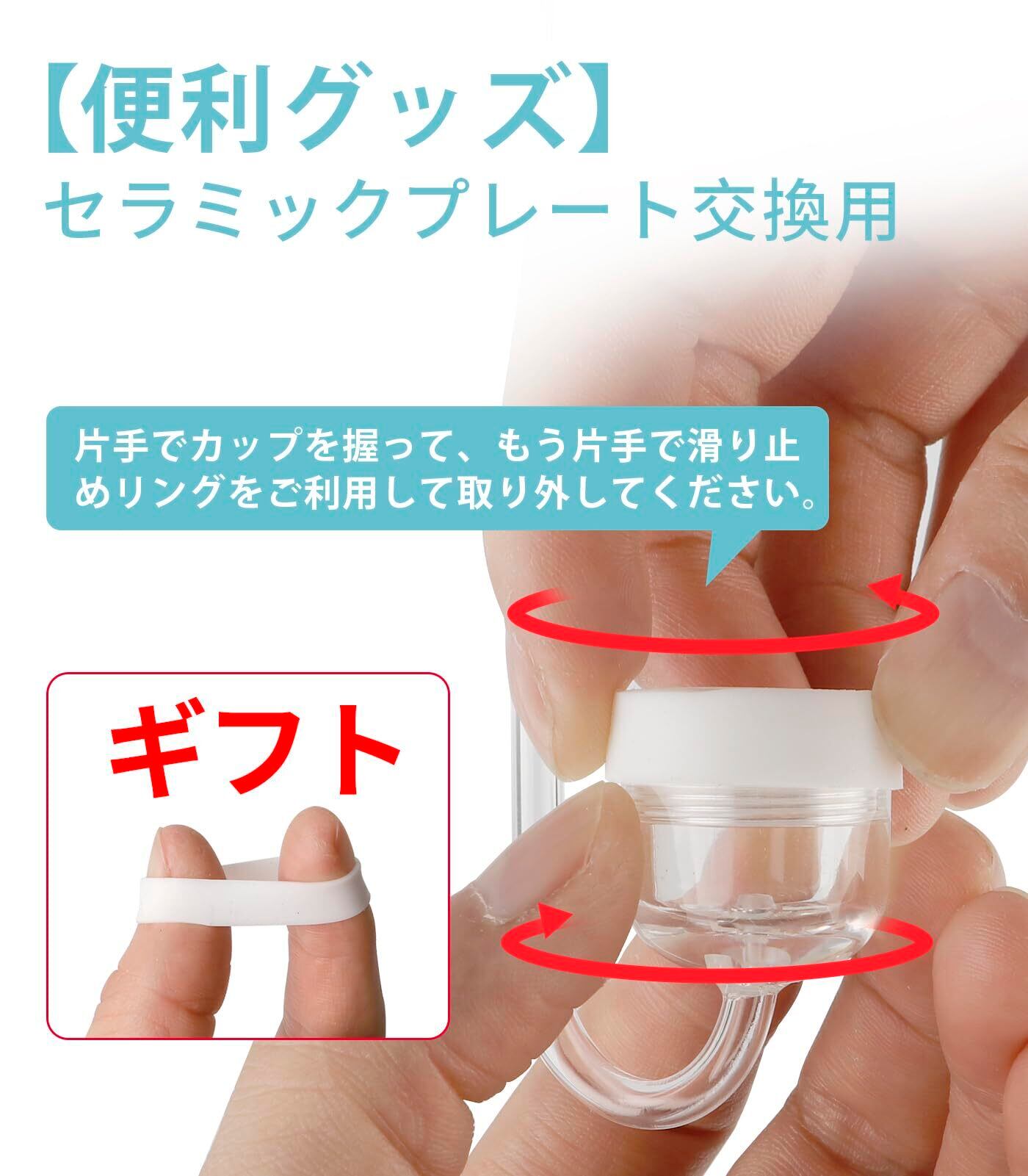 おまけ付きの滑り止めリングが、清掃、プレートの交換時には、これをご利用して拡散プレートをキャップにかけて、ディフューザーのカップに握って取り外せます(ディフューザーの付け根を無理に折らないでください)。ご購入後のご不明点等がございましたら、ご遠慮なくお問い合わせください。