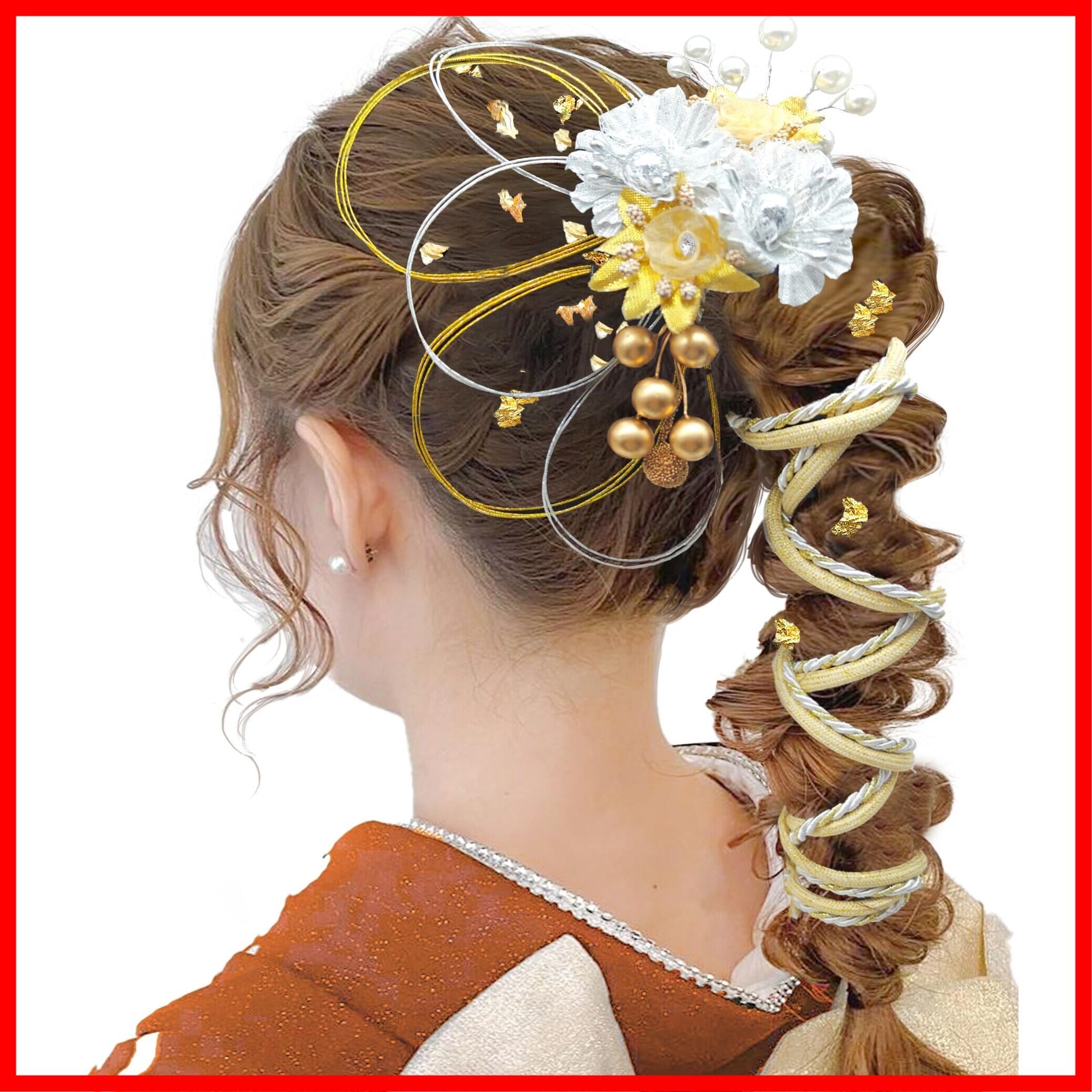 髪飾り 成人式 水引 金箔 銀箔 組紐 人気 ロープ ゴールド シルバー ヘアアクセサリー 前撮り 振袖 卒業式 結婚式 和装 袴 着物 浴衣に ブライダル 花嫁 ヘッドパーツ J0010 | hananoki