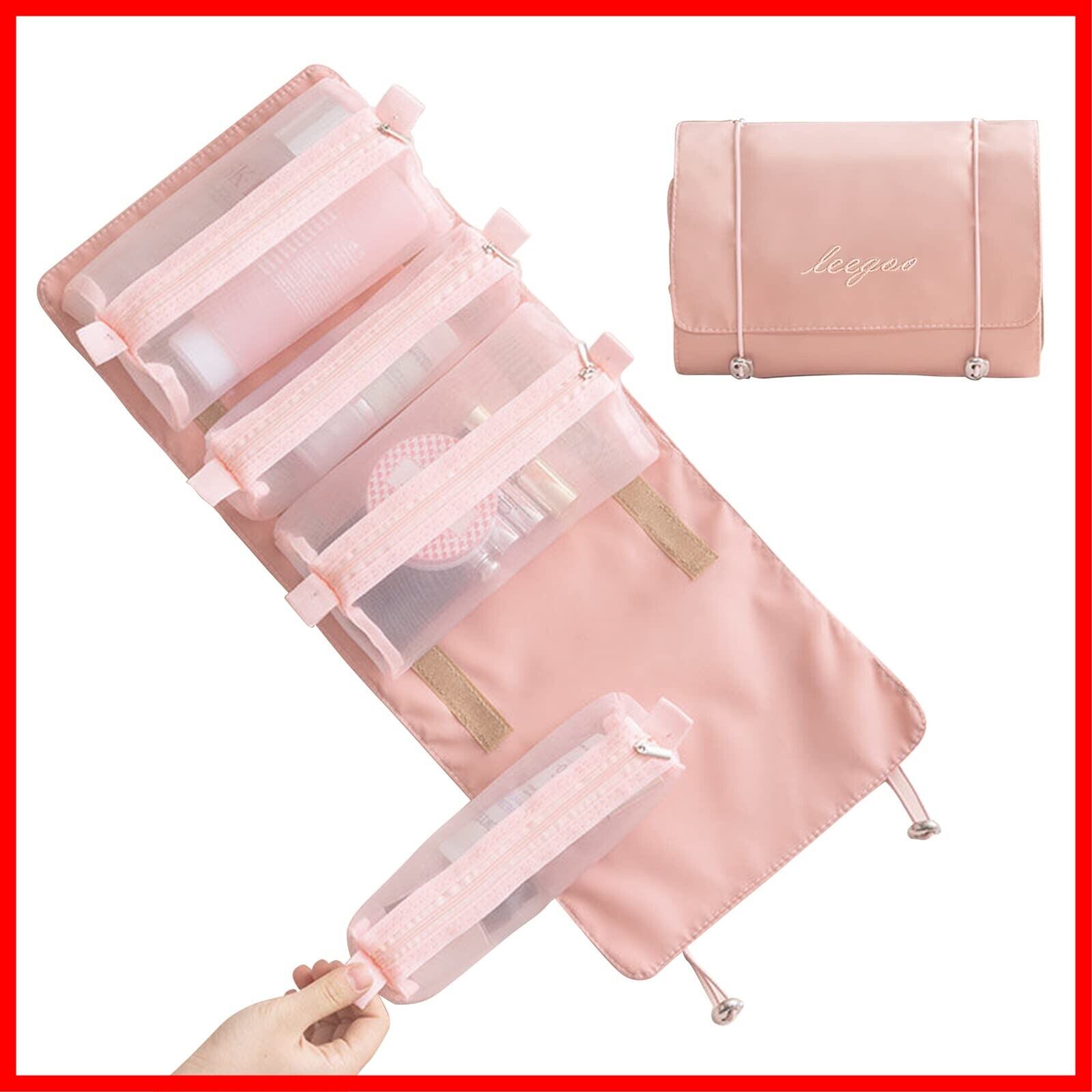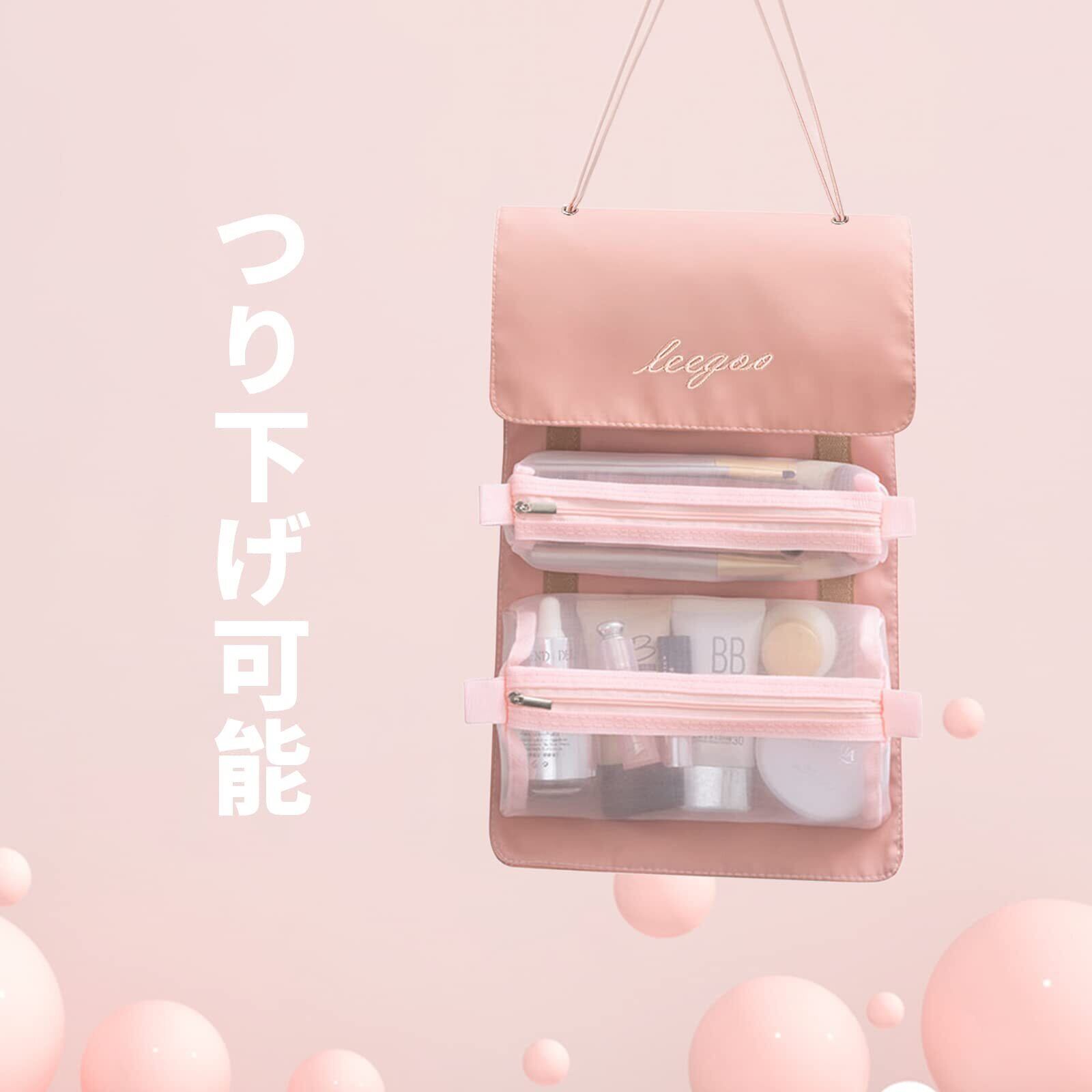 ALLMIRA メイクポーチ トラベルポーチ 化粧ポーチ 大容量 4仕切り 旅行 防水 コスメポーチ 洗面用具 ポーチ 旅行用 持ち運び 折り畳み トラベル 取り外し 折りたたみ 多機能 バスルームポーチ トイレタリーバッグ 吊り下げ バニティーポーチ 化粧品入れ トイレタリーバ 小物入れ 収納バッグ メンズ レディース (ピンク)