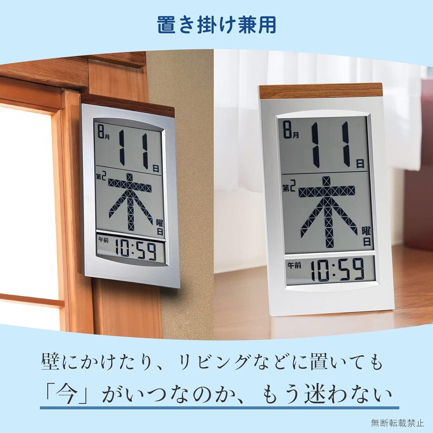 めくる必要のないデジタル表示の日めくりカレンダー。読みやすく大きな曜日と日にち表示が特長