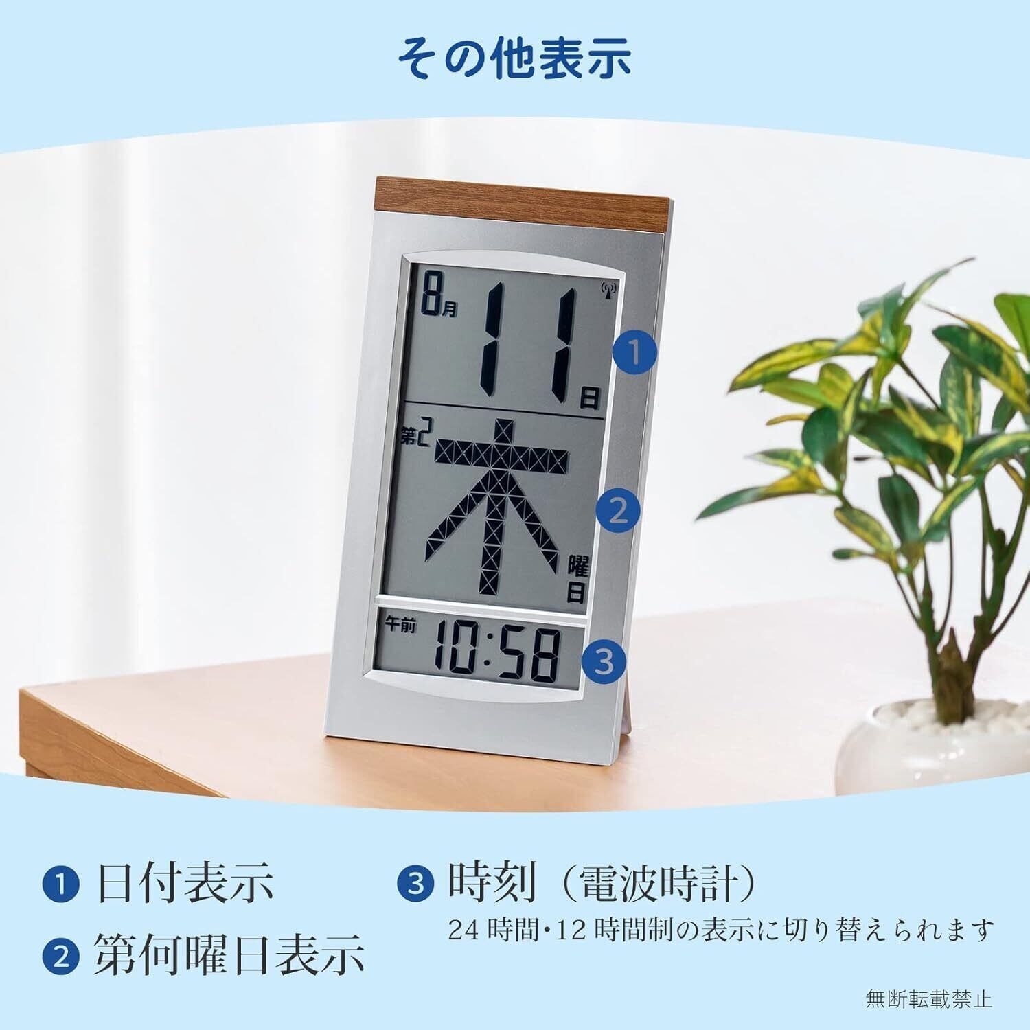 ADESSO(アデッソ) 日めくりカレンダー 電波時計 デジタル メガ曜日日めくり電波時計 置き掛け兼用 シルバー HM-704