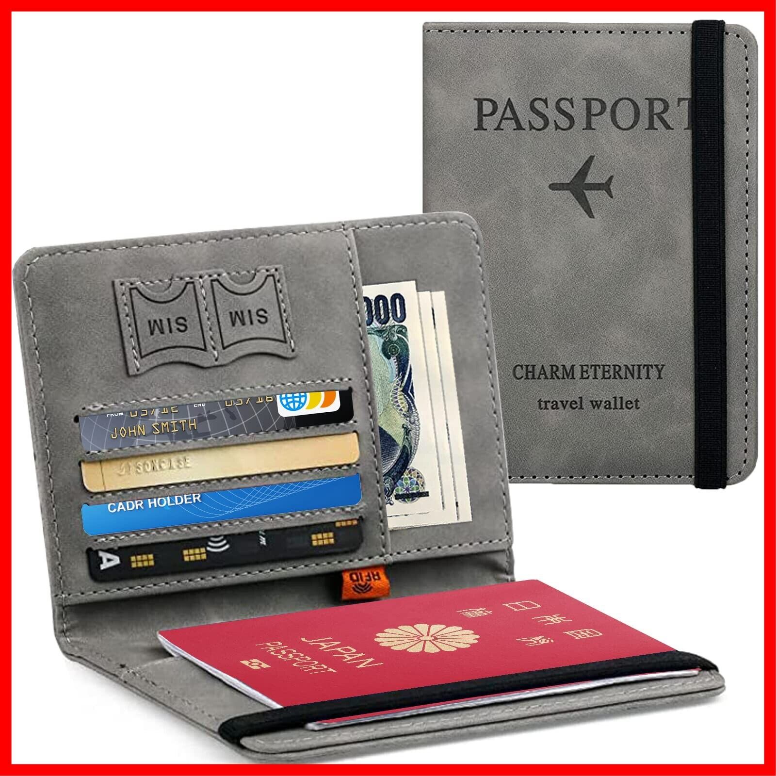 [Hueapion] パスポートケース スキミング防止 パスポートカバー 多機能収納ポケット パスポート カードケース ラベルウォレット 高級PUレザー 軽量 コンパクト おしゃれ 海外旅行 旅行用品 透明パスポートカバー付き (グレー)