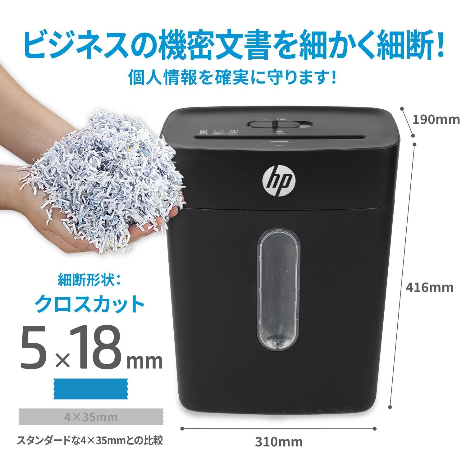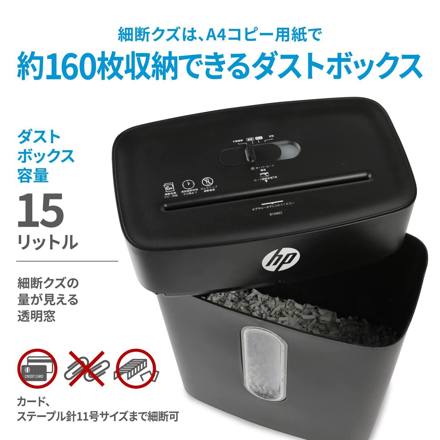 HP 電動シュレッダー 家庭用(15L / 1-3人用) 静音65dB 18ヶ月 / 5x18mmミニクロスカット6枚同時細断(リモートワーク/在宅勤務/オフィス) 連続細断4分間 大容ダストボックス(160枚収納)/ 小型スリム/キャスター無し ブラック | hananoki
