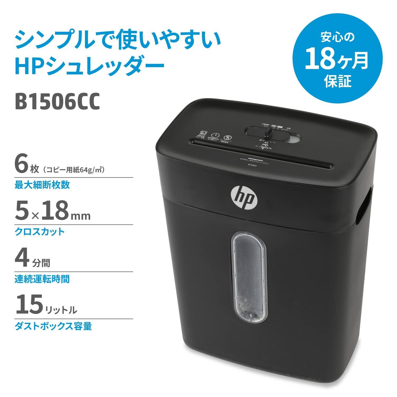 HP 電動シュレッダー 家庭用(15L / 1-3人用) 静音65dB 18ヶ月 / 5x18mmミニクロスカット6枚同時細断(リモートワーク/在宅勤務/オフィス) 連続細断4分間 大容ダストボックス(160枚収納)/ 小型スリム/キャスター無し ブラック