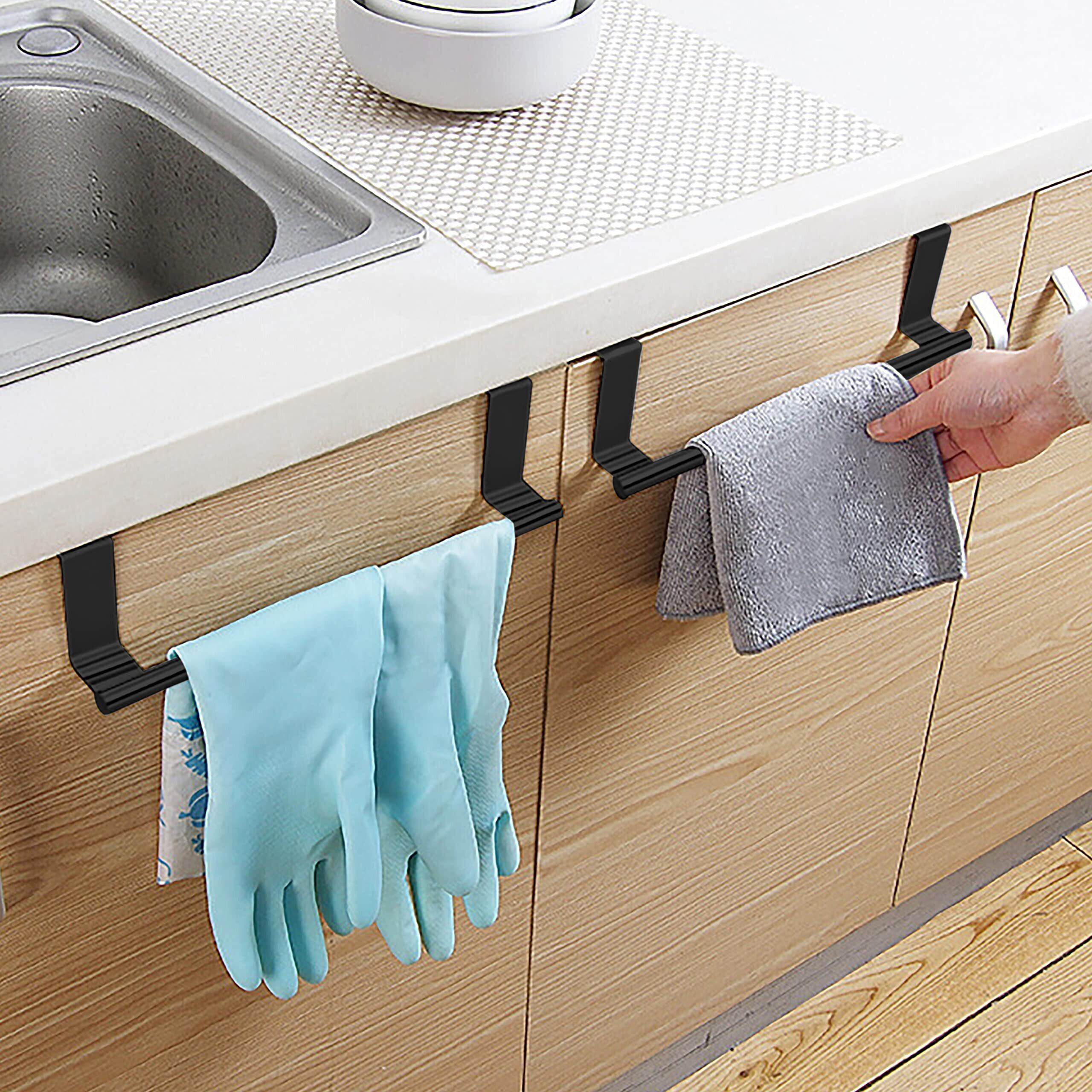 【2個セット】タオルかけ ステンレス製 タオルハンガー キッチンタオル ドアハンガー キッチン 洗面 扉 キッチン 戸棚 引き出し サビにくく ステンレス製 穴あけ不要 23cm 2本 EX-SPACEEX-SPACE (ブラック) | hananoki