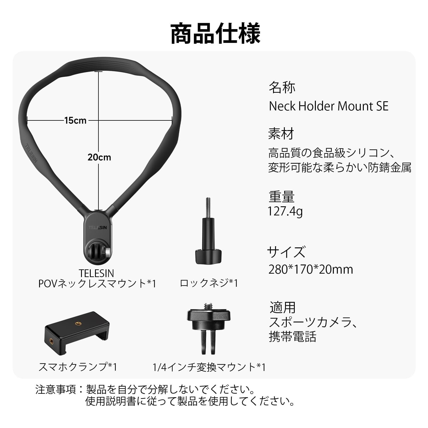 【TELESIN公式】 ネックレスマウント POVマウント GoPro用アクセサリー 釣り用首掛け 電話ホルダー 超軽量 便利 食品級シリコン製で 柔軟性 形状自由変化 多角度調整可能 ロック式 落下防止 耐久性 Hero 13-5 Black Mini/Osmo Action 3 4 5 PRO/insta360 X4 X3 ONE RS Ace Pro 2/iPhone/Androidと対応
