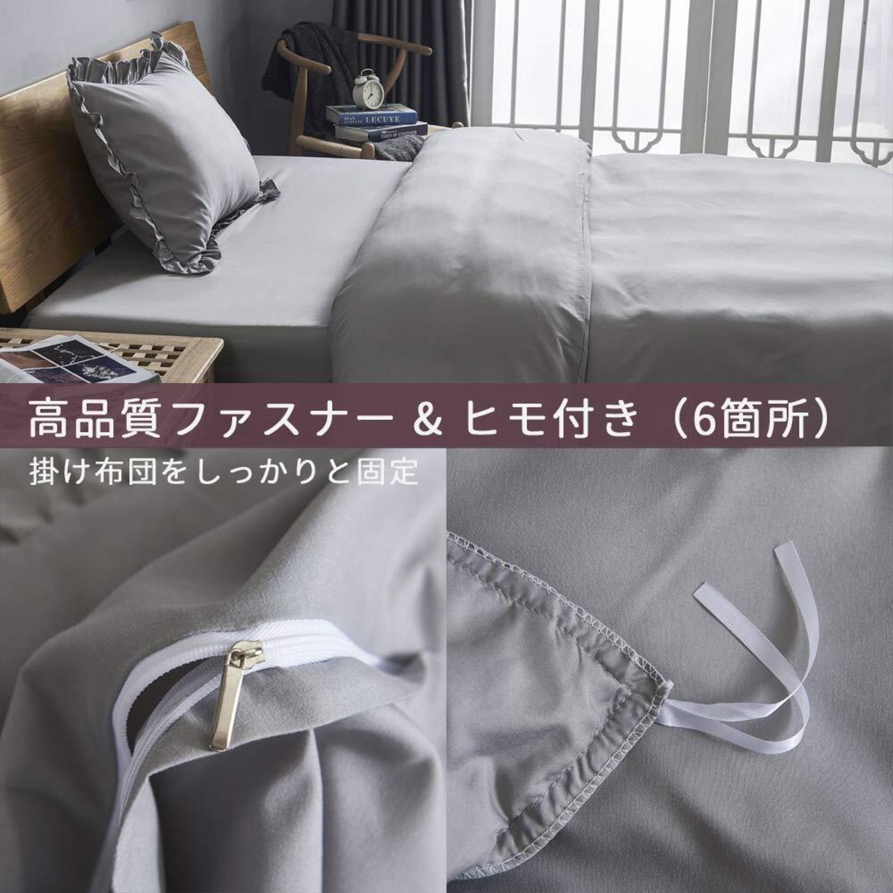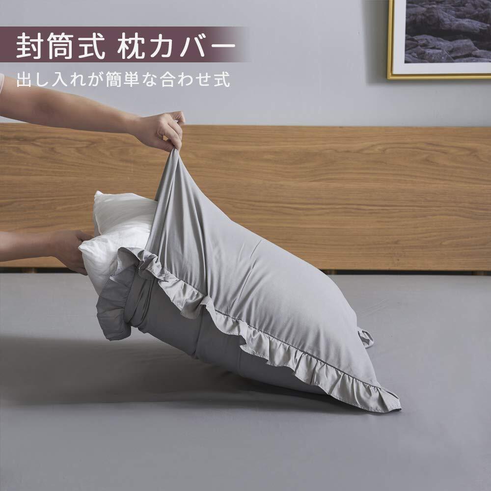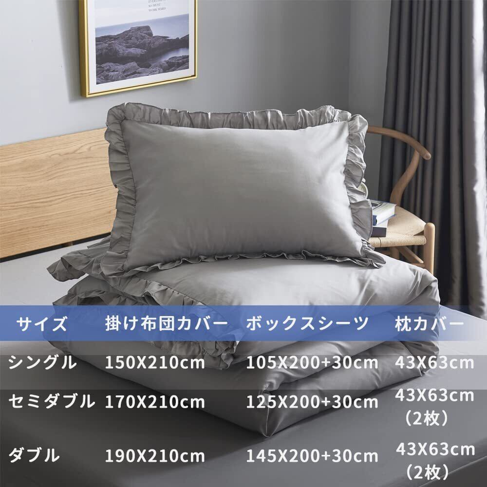 HOdo Home 布団カバー シングル 3点セット 掛け布団カバー ベッドカバー 枕カバー ベッドシーツ ボックスシーツ 洋式・和式兼用 寝具カバーセット フリル付き ピーチスキン加工 洗い替え 速乾(ライトグレー) | hananoki