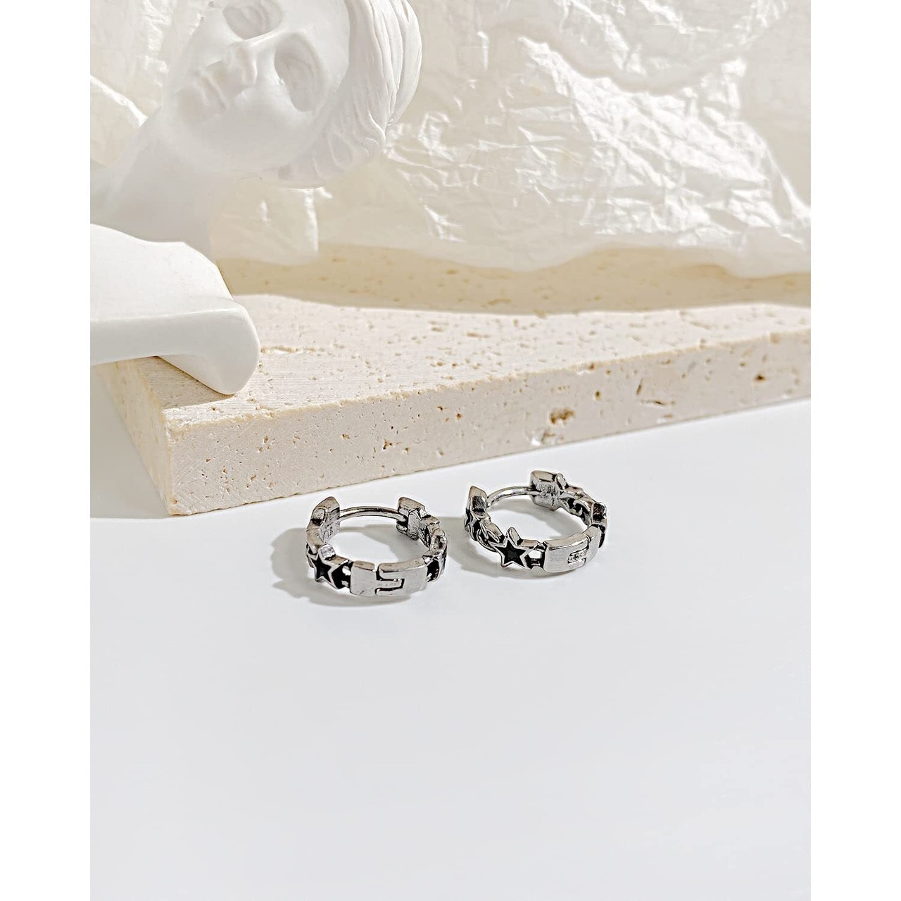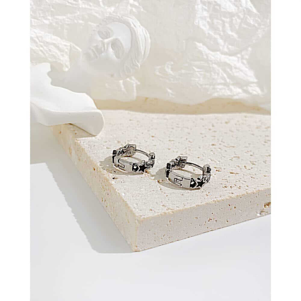 ピアス レディース 男女兼用 シルバー 銀色 アレルギー対応 チタン スターフープピアス リング 星ジュエリー レディース 男女兼用 アクセサリー 星ピアス ハロウィン