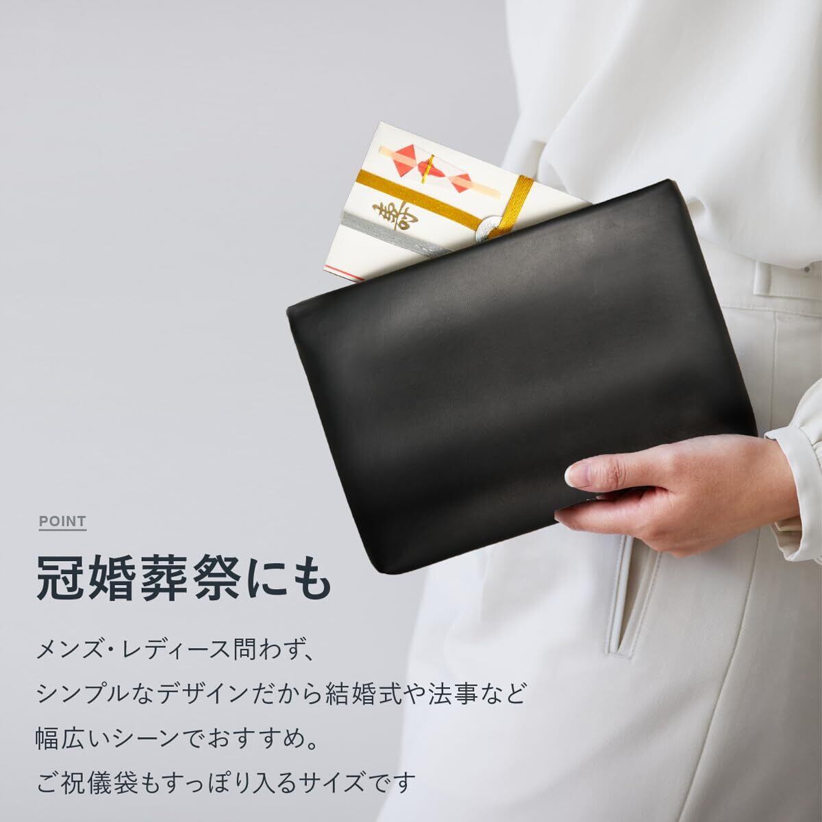 【冠婚葬祭にも使える】結婚式や法事など幅広いシーンでおすすめ。ご祝儀袋もすっぽり入るサイズ感です。