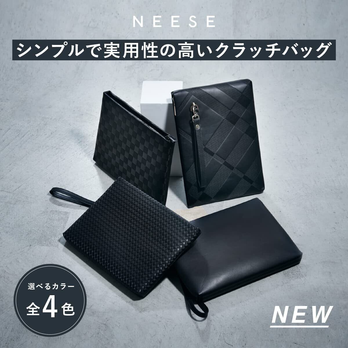 [NEESE] クラッチバッグ 選べる4デザイン 4つの小物ポケット A5・8.3インチタブレット対応 結婚式 冠婚葬祭 パーティ PUレザー フォーマル セカンドバッグ
