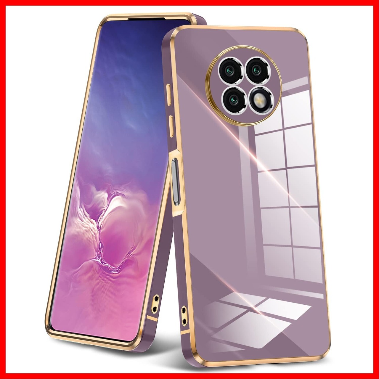 Xiaomi Redmi Note 9T 用 ケース クリア 耐衝撃 TPU ケース レンズ保護 ソフトケース 透明 メッキ加工 ワイヤレス充電 シャオミ Redmi Note 9T 5G 用 カバー ラップホール付き 薄型 軽量 メッキ枠 パープル/ゴールド JP2-56 | hananoki