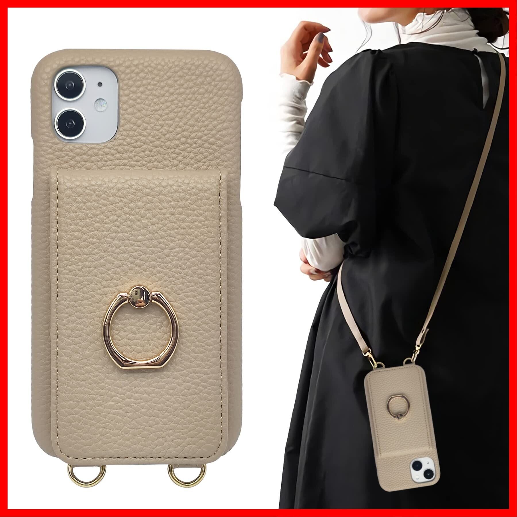 iPhone11ケース ショルダー カード収納 背面手帳型 リング付 スマホケース いphone11 ケース ショルダー ストラップ付き iPhone11ショルダーケース 落下防止 リング付き 肩掛け 斜め掛 首掛け 可愛 アイフォン11 ケース ショルダー スタンド機能 モカブラウン2 | hananoki