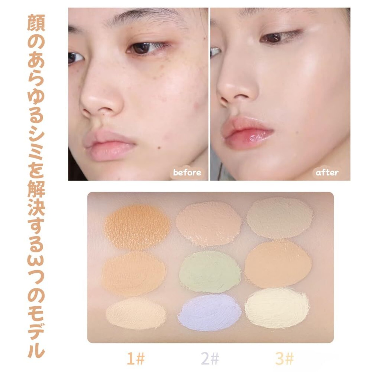 シミ、クマ、ニキビ跡をカバーする3色コンシーラーパレット