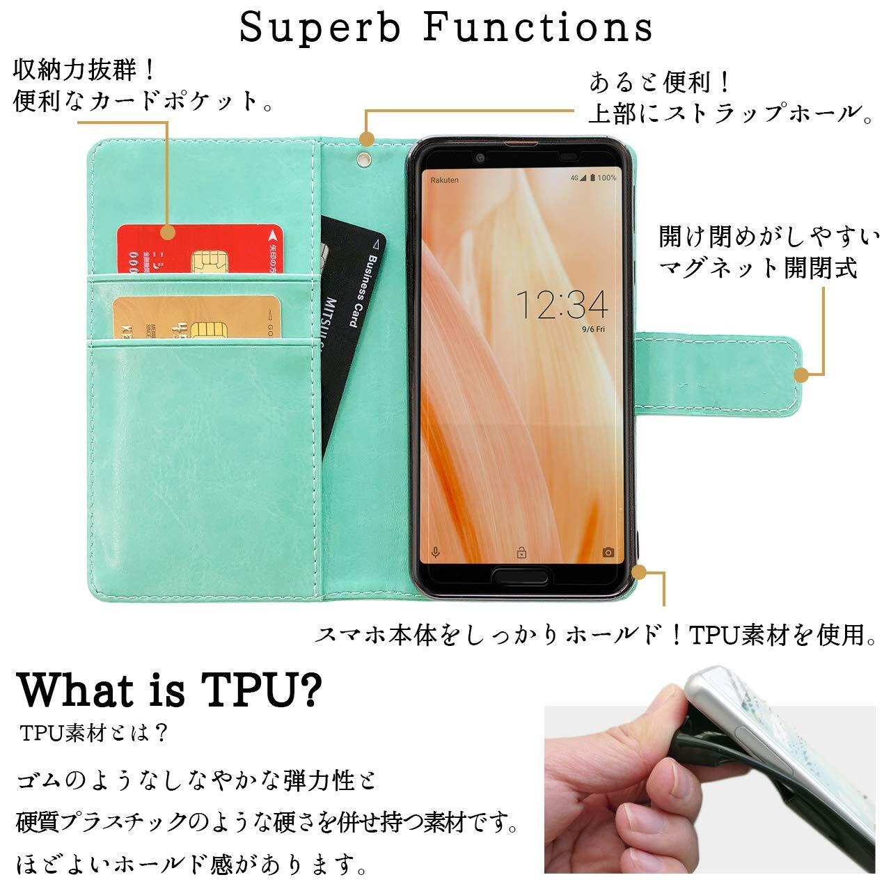 カードなどが収納できるポケット付きで、実用的な手帳型ケースです。手帳表面に特殊な加工を施してありますので細かい傷などがある場合がございます。予めご了承ください。