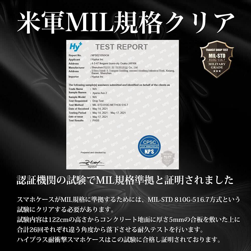【対応機種】 SONY Xperia Ace II SO-41B (docomo) 【スマホを落としてしまっても衝撃を最小限に抑えるケース】スマホが日常の生活に溶け込む現代で、落下などによるスマホの破損は販売台数に比例して増えている状況です。本ケースの角には落下時の衝撃を吸収するエアポケットを備えており、万が一スマホを落としてしまった場合でも、落下時のダメージを最小限に抑えることが可能となっており、その耐衝撃性能は第三者機関の試験による米軍MIL規格をクリアするほど高いことが証明されております。また、エクスペリアエース2 SO41B 専用にオリジナル設計しているためぴったりとフィットし、保護性能には欠かせないポイントとなっています。