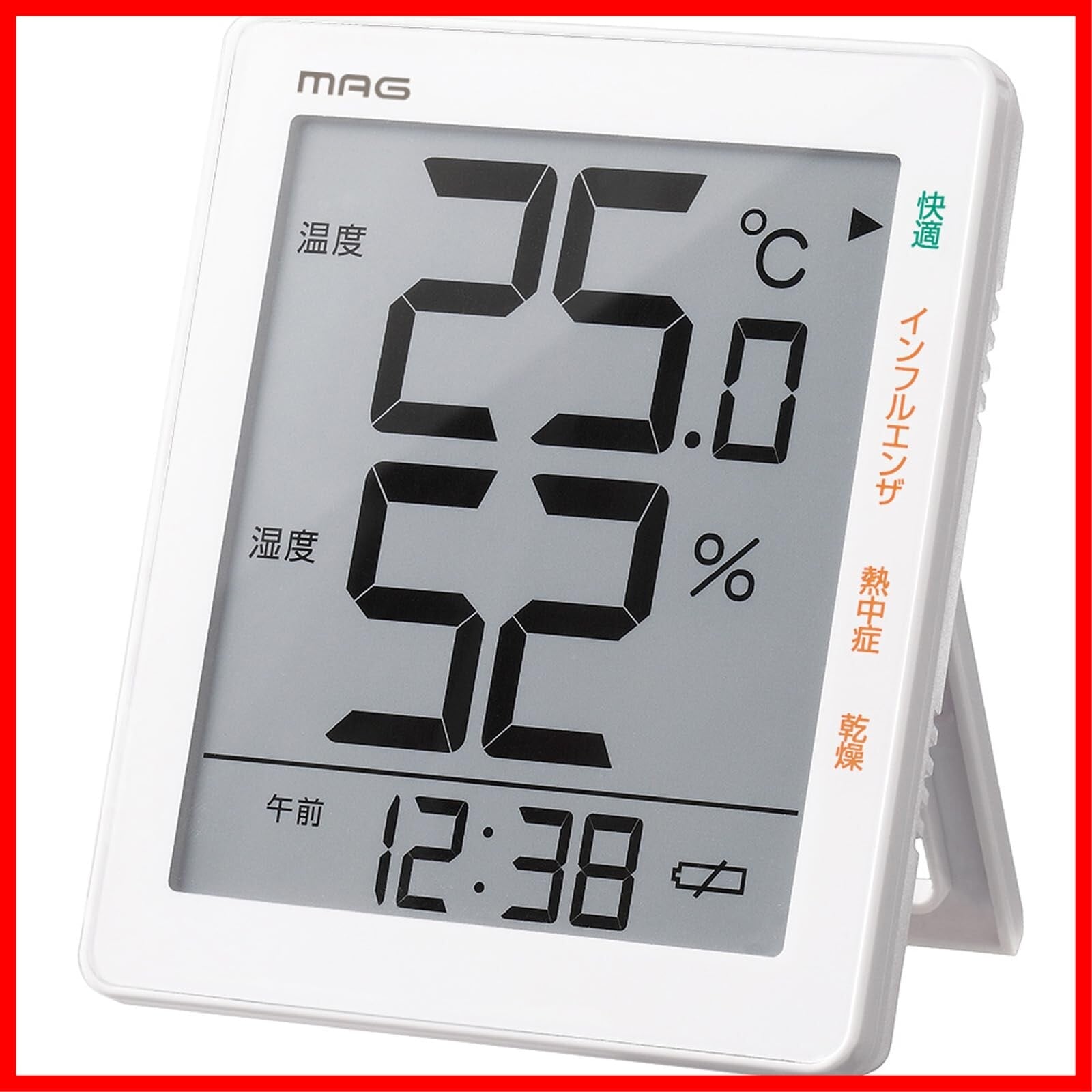 MAG(マグ) 温度計 湿度計 温度湿度計 デジタル 環境目安表示 熱中症 インフルエンザ 乾燥 快適 時計表示 大型 大きい 置き掛け兼用 ホワイト TH-105 WH ノア精密 | hananoki