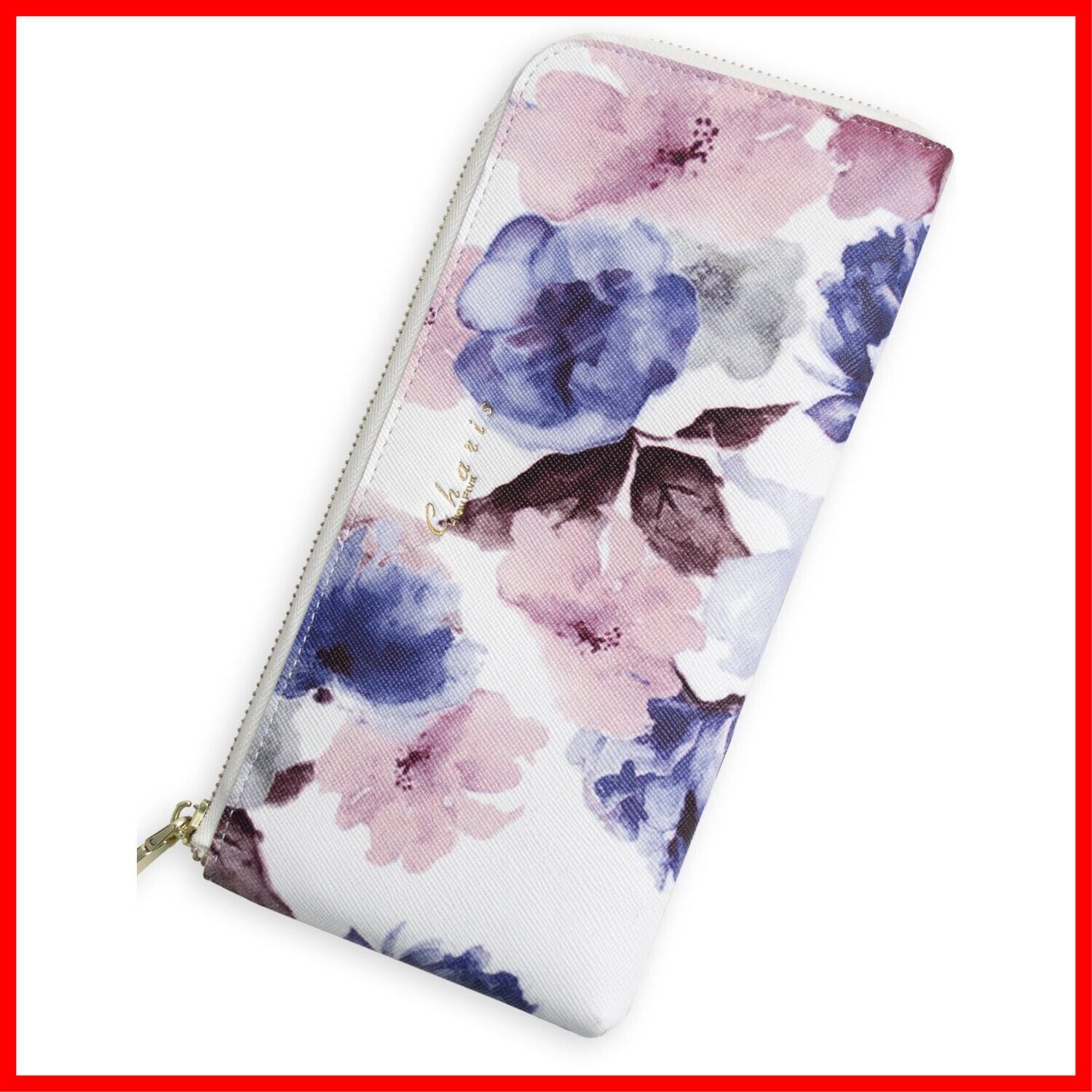 [Charis HIGH FIVE] [カリス] 財布 レディース 長財布 花柄サフィアーノレザー L字ラウンドファスナー 薄い ファスナーなし 小銭入れ ブルー