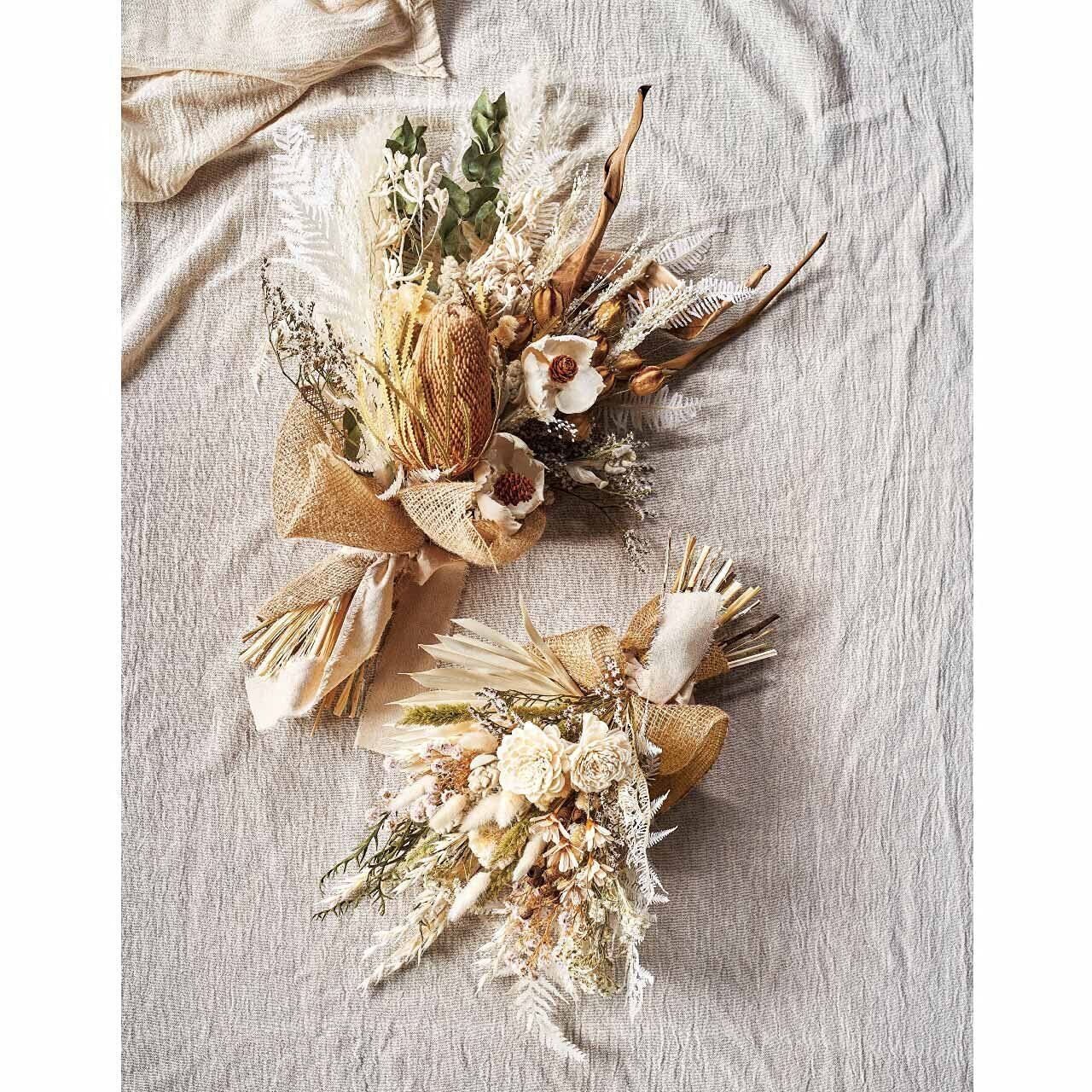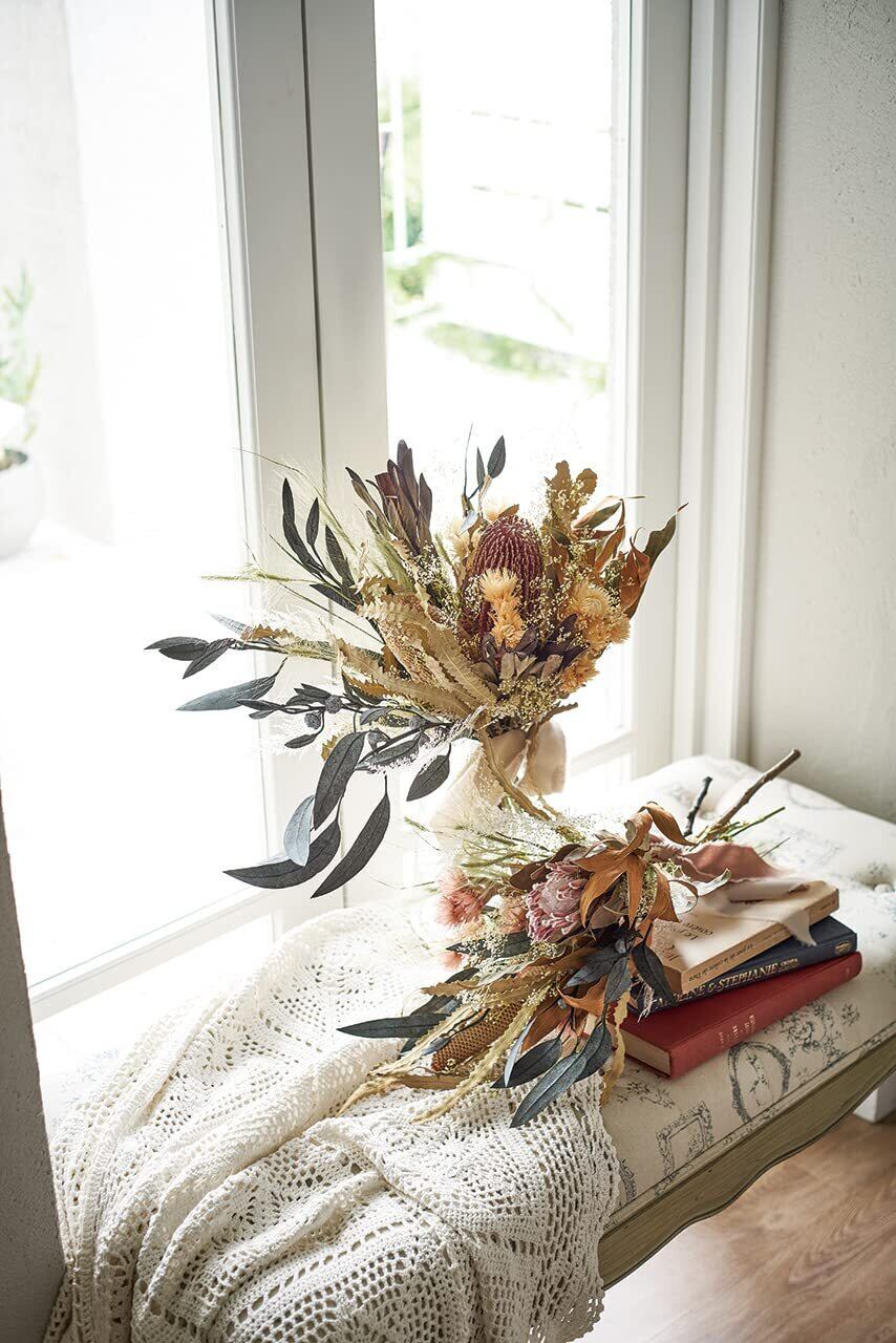 ・ドライフラワーなどの天然素材には自然のものだからこそ作り出せる風合いがあります。部屋に溶け込む柔らかい雰囲気を作り出してくれます。