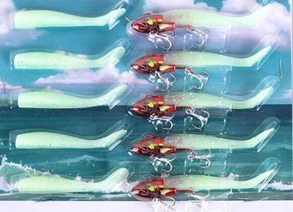 【予備シャッドワーム付け】 5点セットに予備シャッドワーム5本込み、あらゆるフィールドで使用可能です。