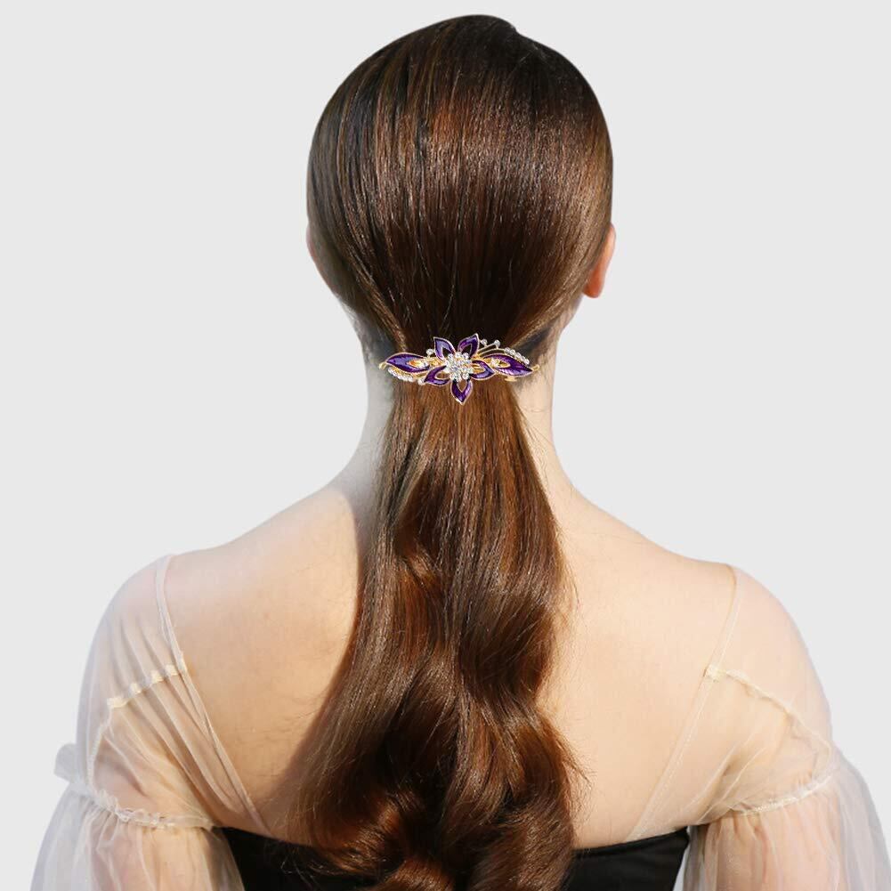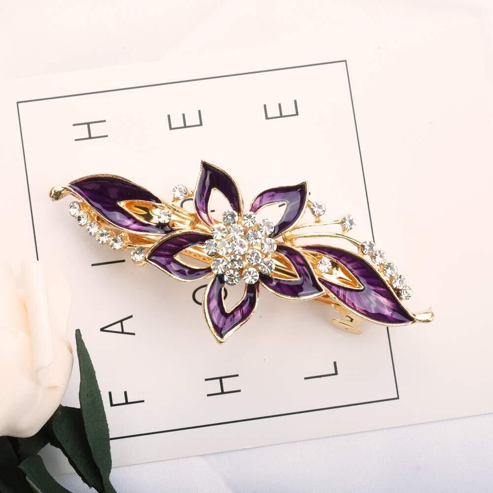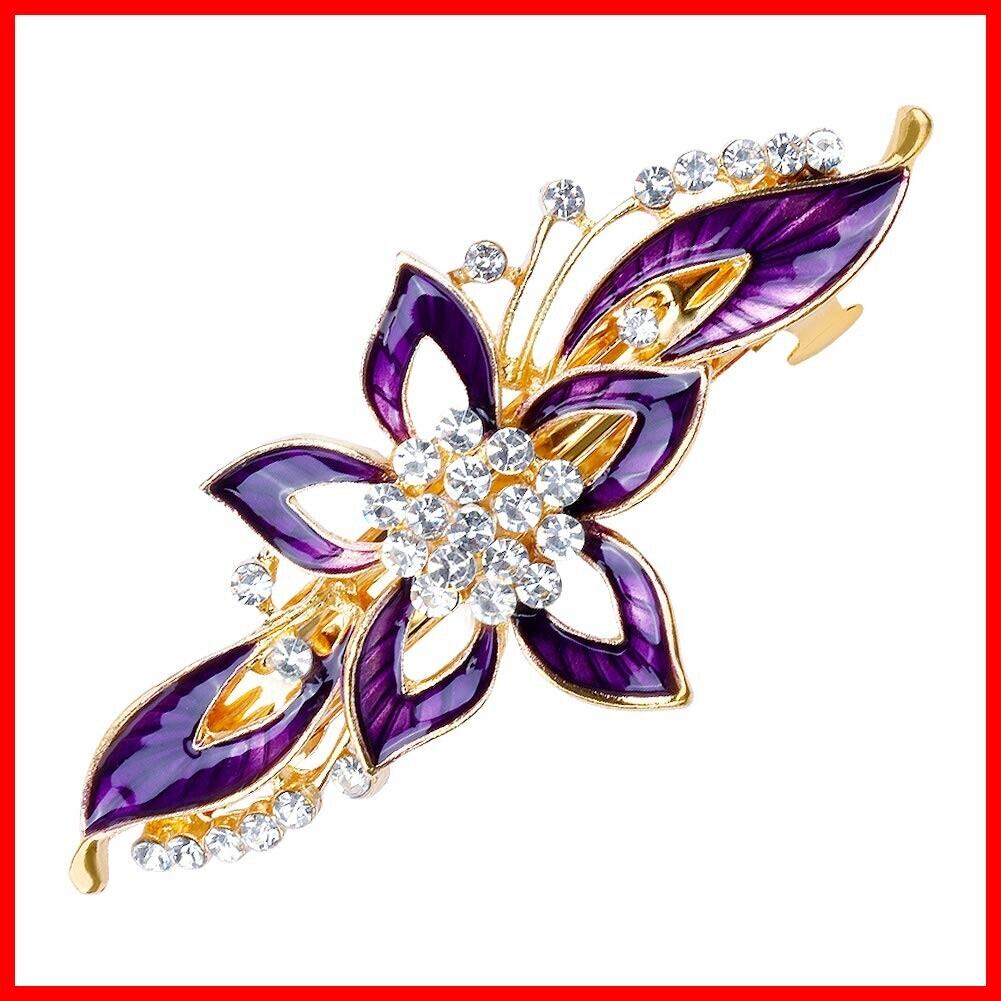 mefeny ヘアクリップ バレッタ 大きい ヘアピン リボン 髪留め 水晶 キラキラ髪飾り卒業式 ヘアアクセサリーお花 レディース 結婚式 パーティ紫 入学式 (Cパール)