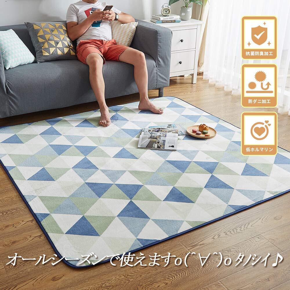 VK Living カーペット ラグ ラグマット 絨毯 200×250cm(約3畳) 滑り止め 洗える 防ダニ 抗菌 防臭 オールシーズン 床暖房 ホットカーペット対応 簡単に掃除 おしゃれ 北欧 フランネルラグ トライアングルブルー | hananoki